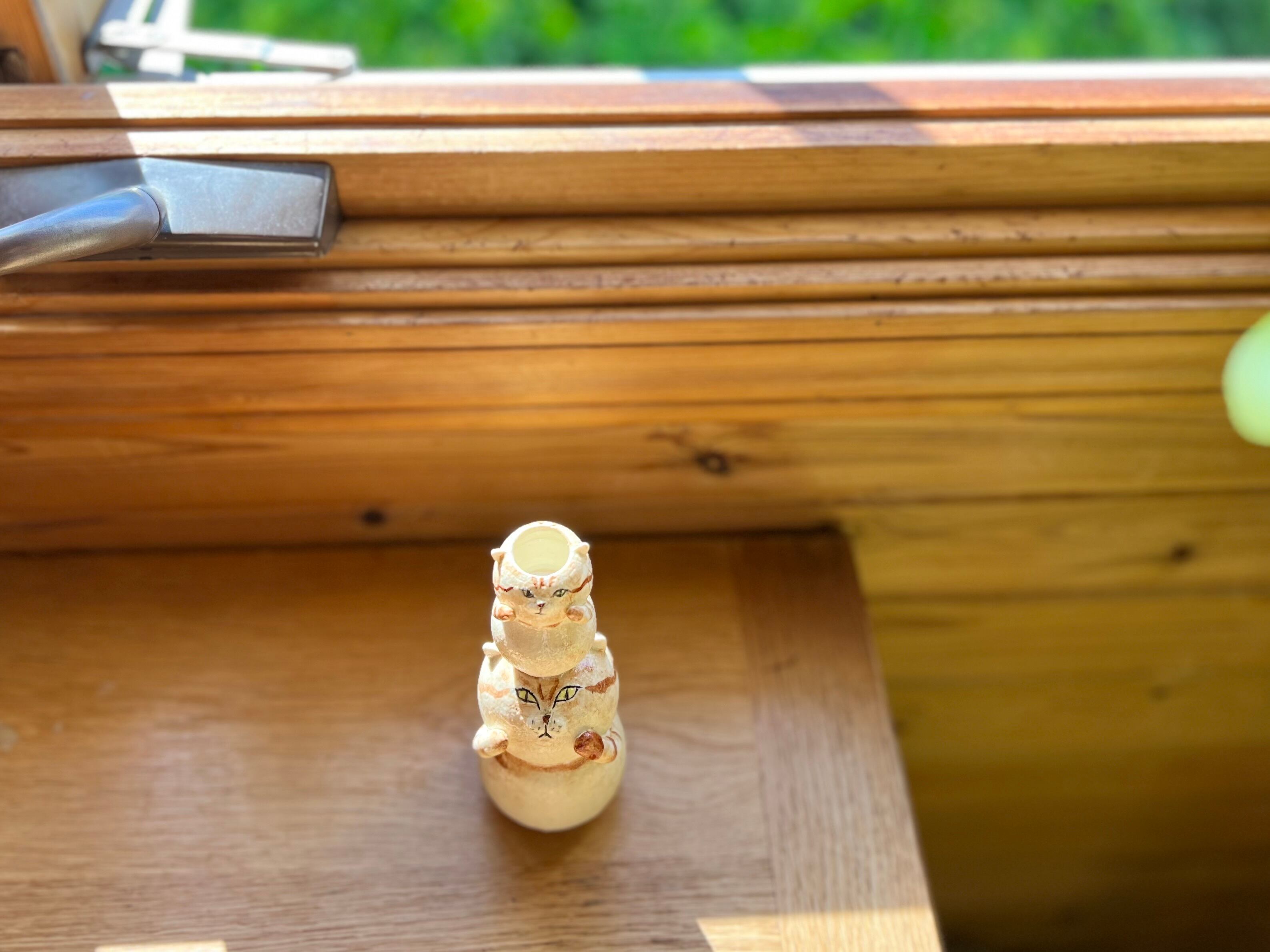 猫さん花瓶 頭の上に小さい猫さんを乗せた茶トラさん