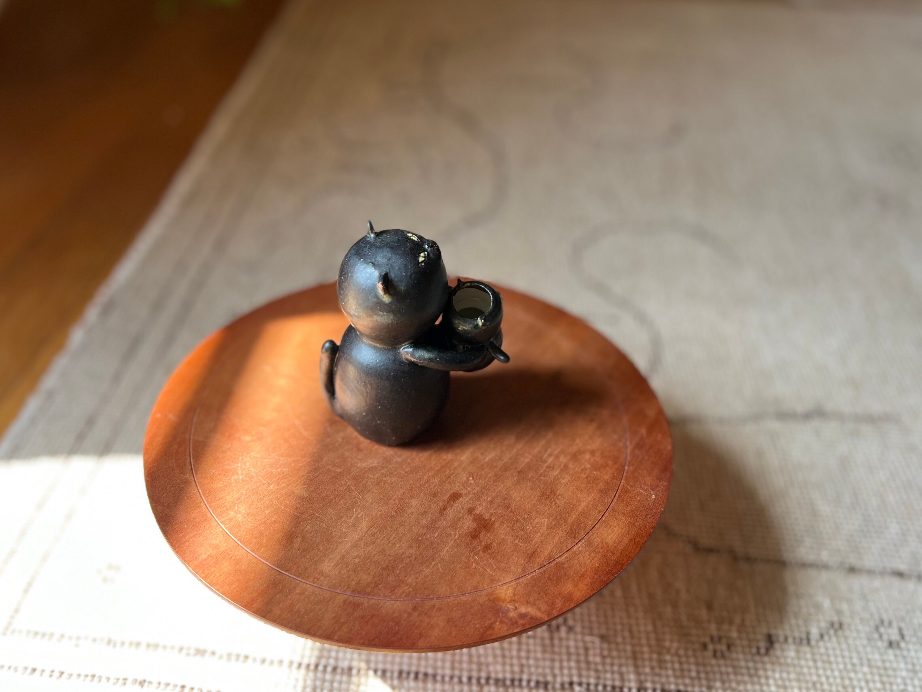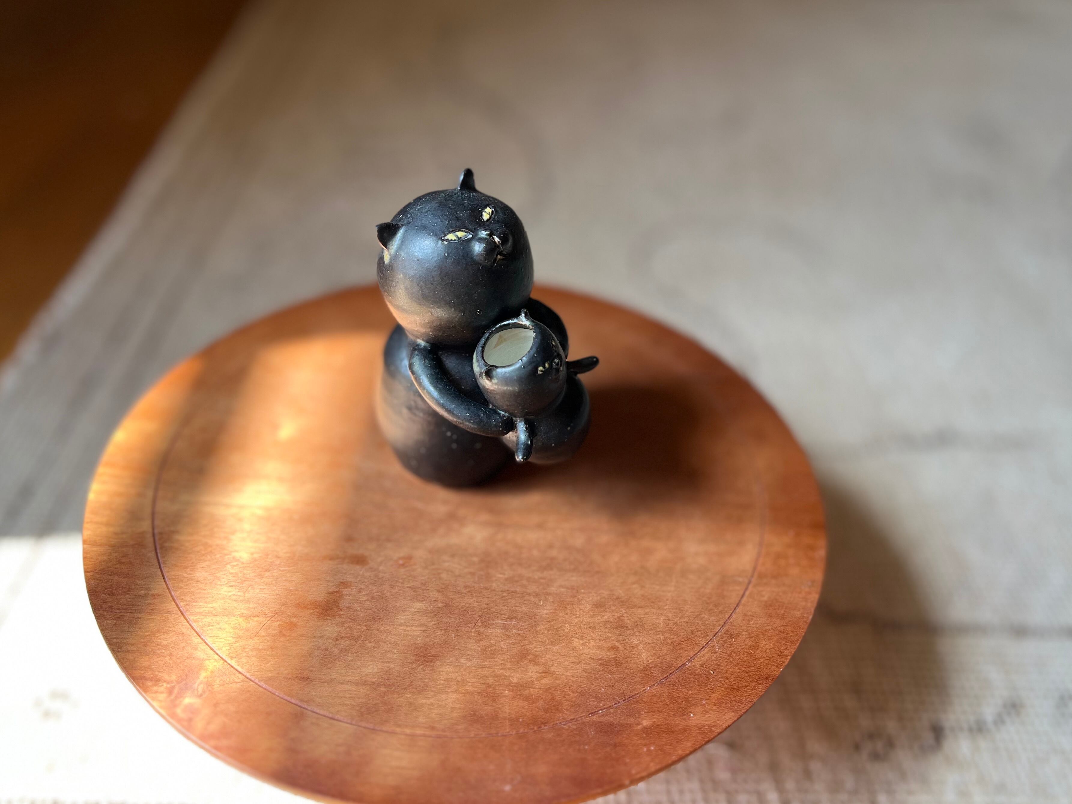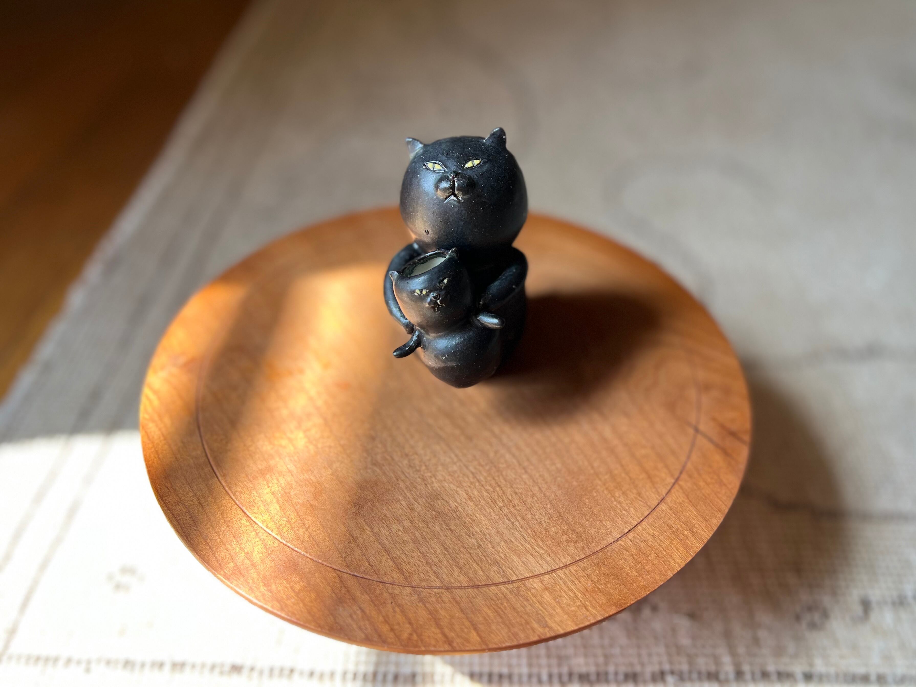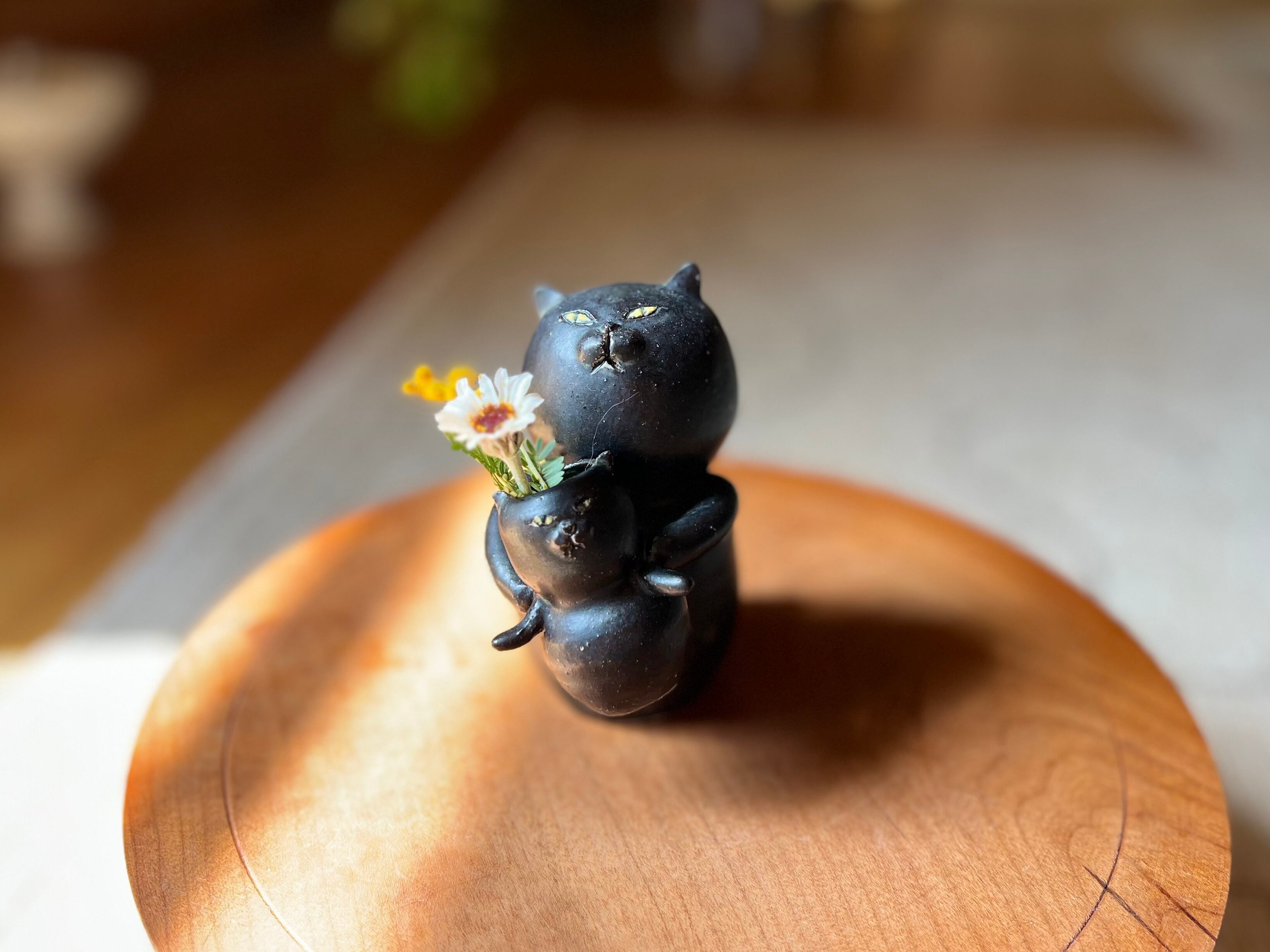 黒猫さんが小さい猫さんを抱っこした一輪挿しです。猫好きの方や花を飾るのが好きな方にぴったりのアイテムです。