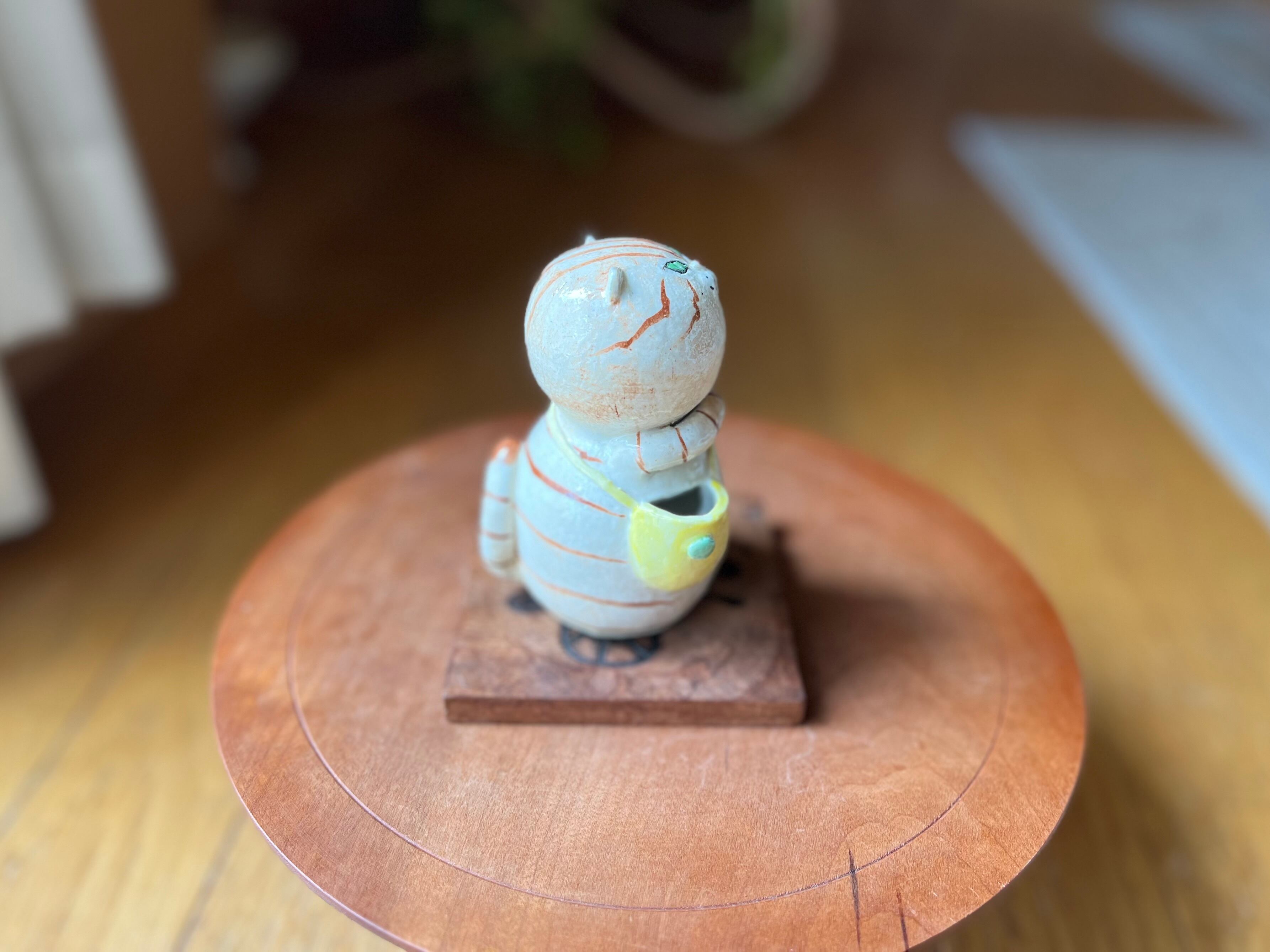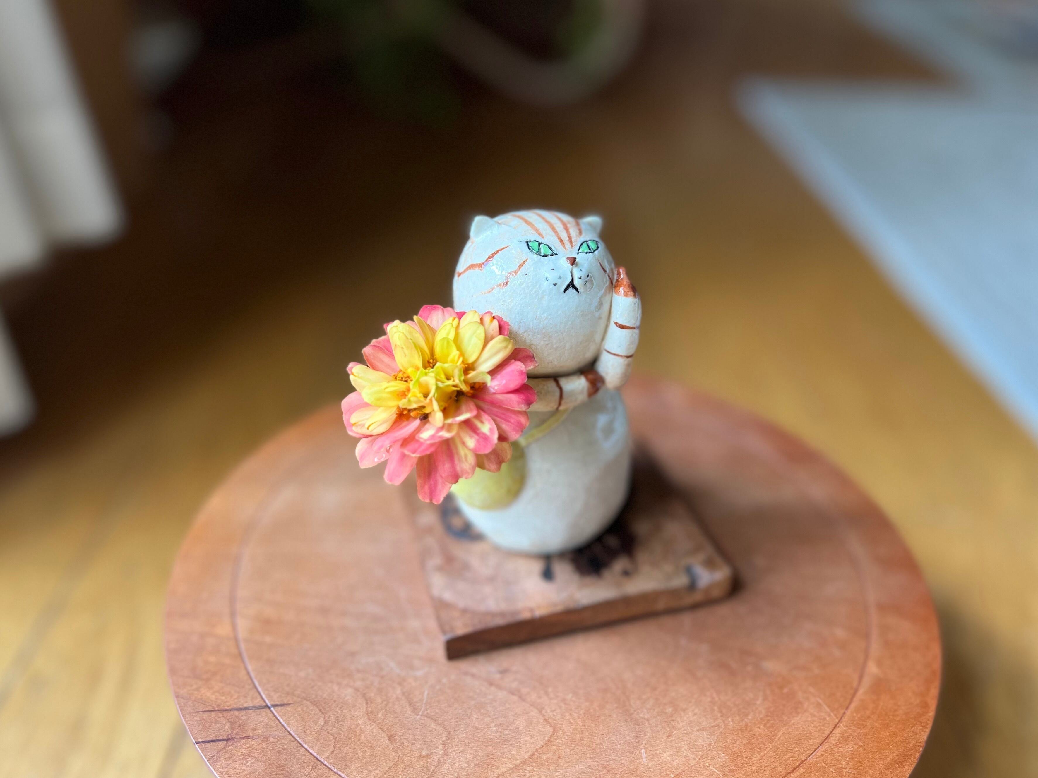 猫さん花瓶は、手作りの陶器製で、ひとつひとつ丁寧に作られています。そのため、それぞれの表情や模様が微妙に異なるのも魅力の一つです。