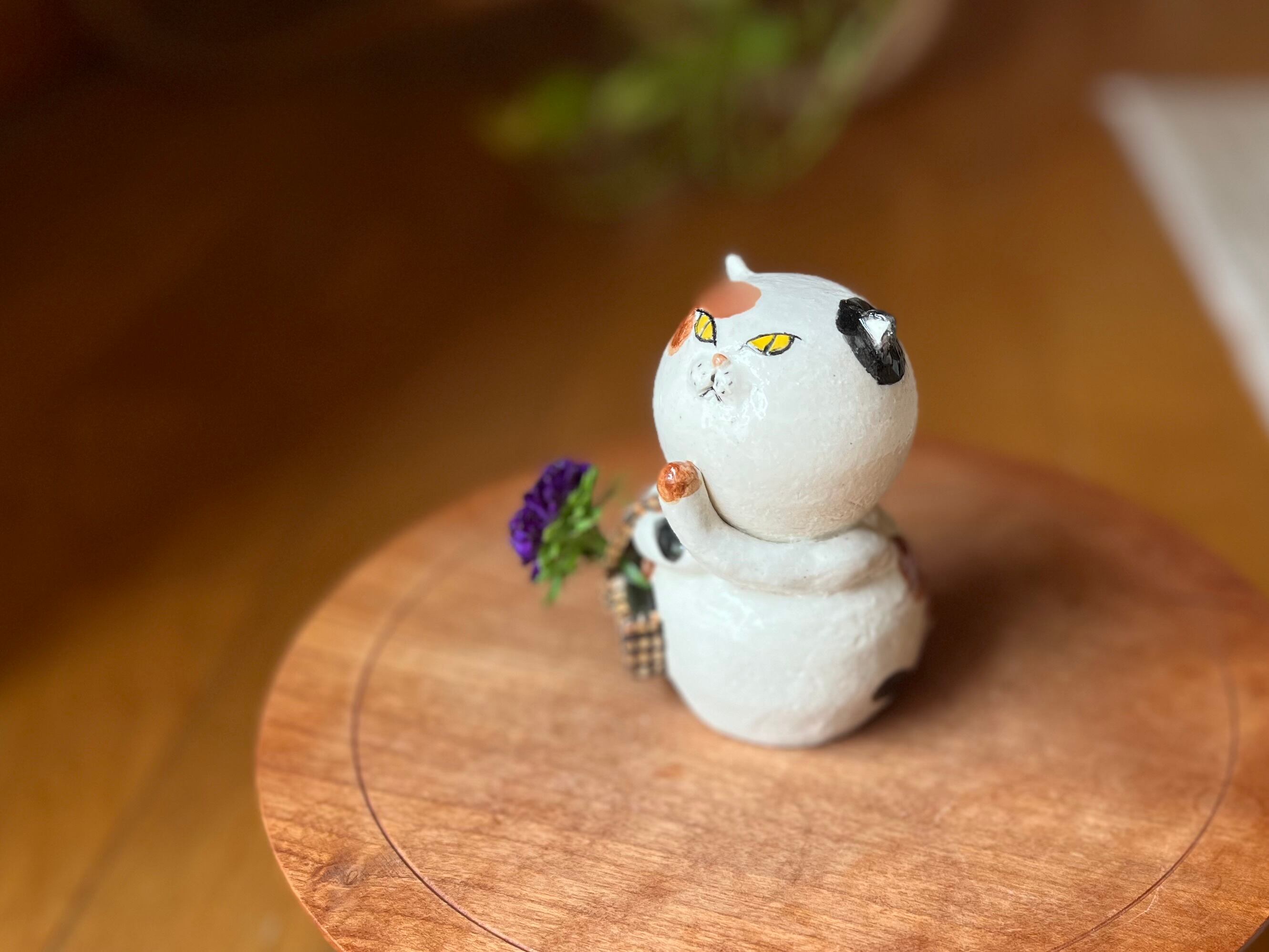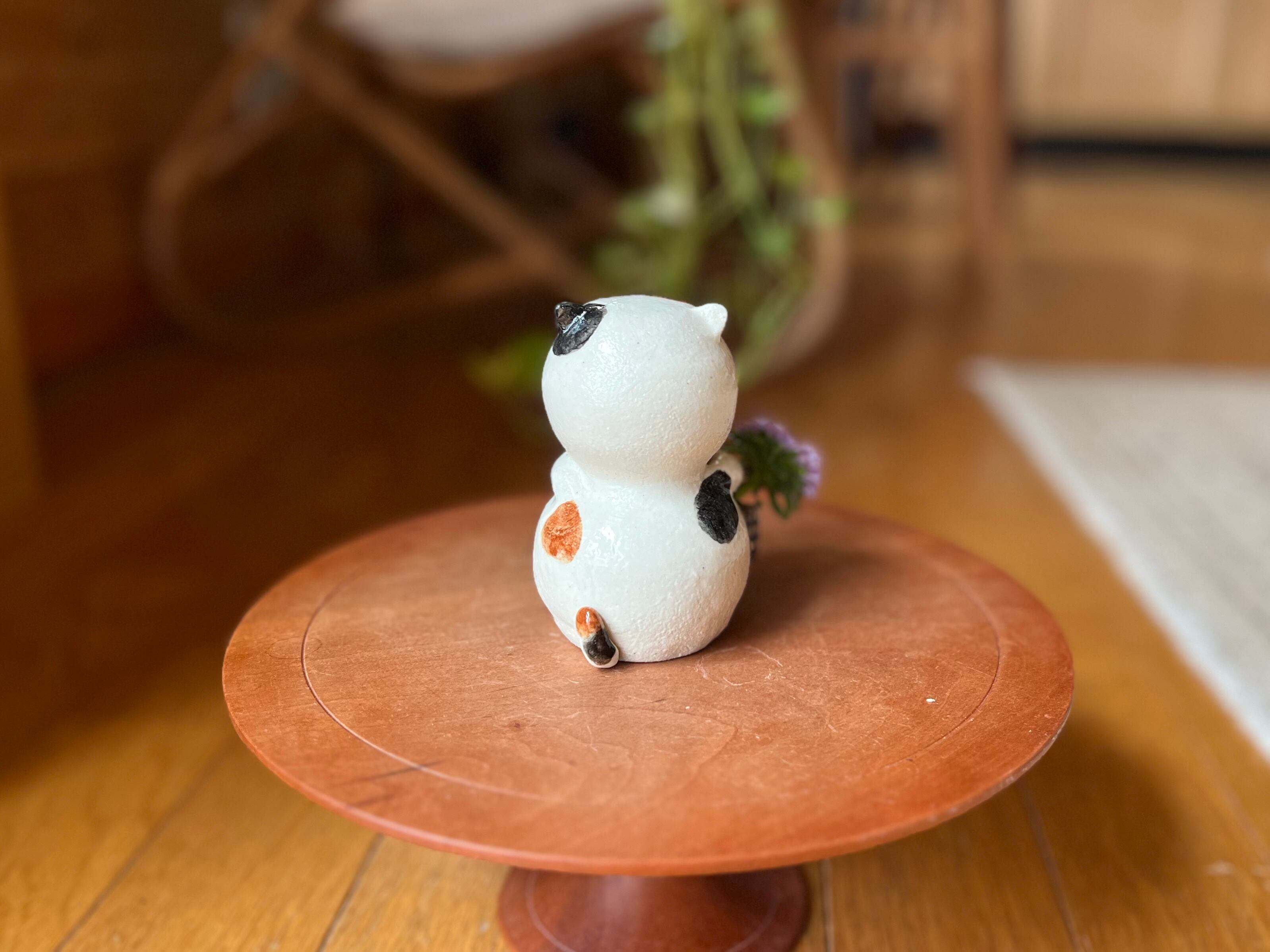 猫さん花瓶は、手作りの陶器製で、ひとつひとつ丁寧に作られています。そのため、それぞれの表情や模様が微妙に異なるのも魅力の一つです。