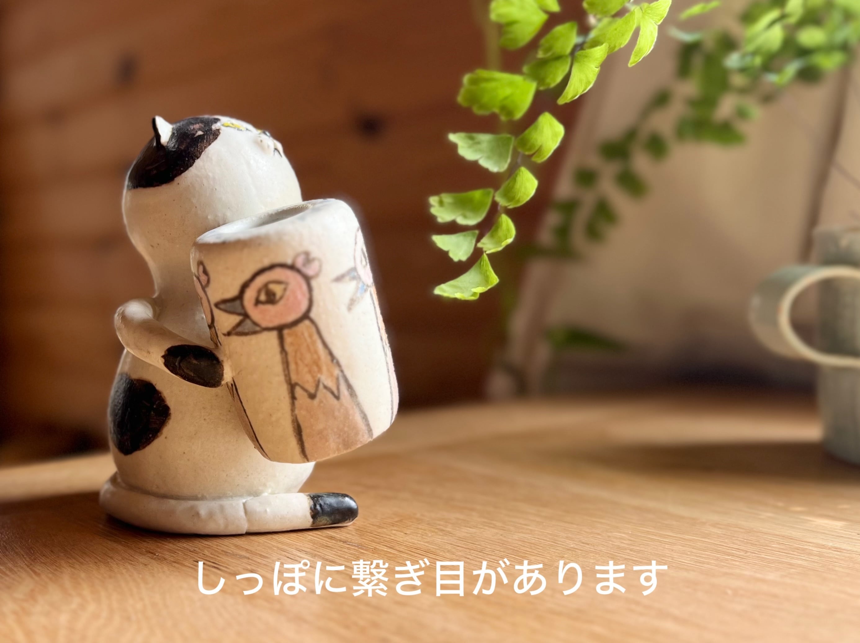訳あり猫さん花瓶 しっぽに繋ぎ目があるハチワレさん