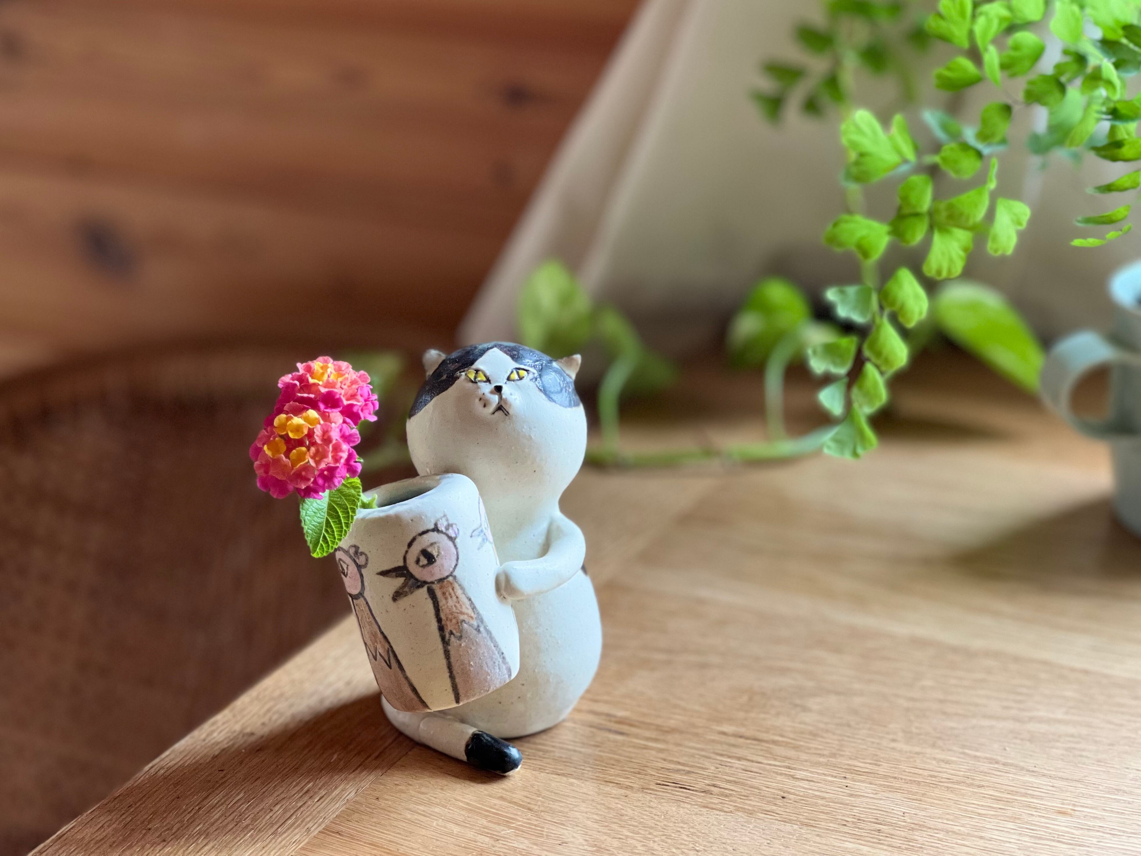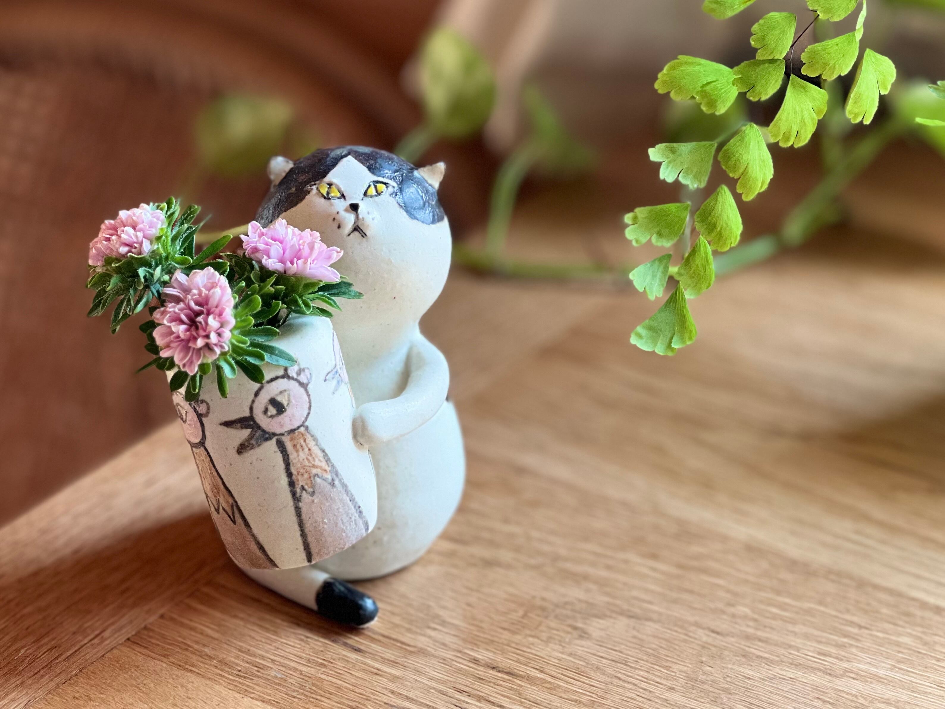 花を生けるだけでなく、ディスプレイとして飾っても素敵な猫さん花瓶。お気に入りの花を飾って、お部屋に一味違った可愛さをプラスしてみてはいかがでしょうか?