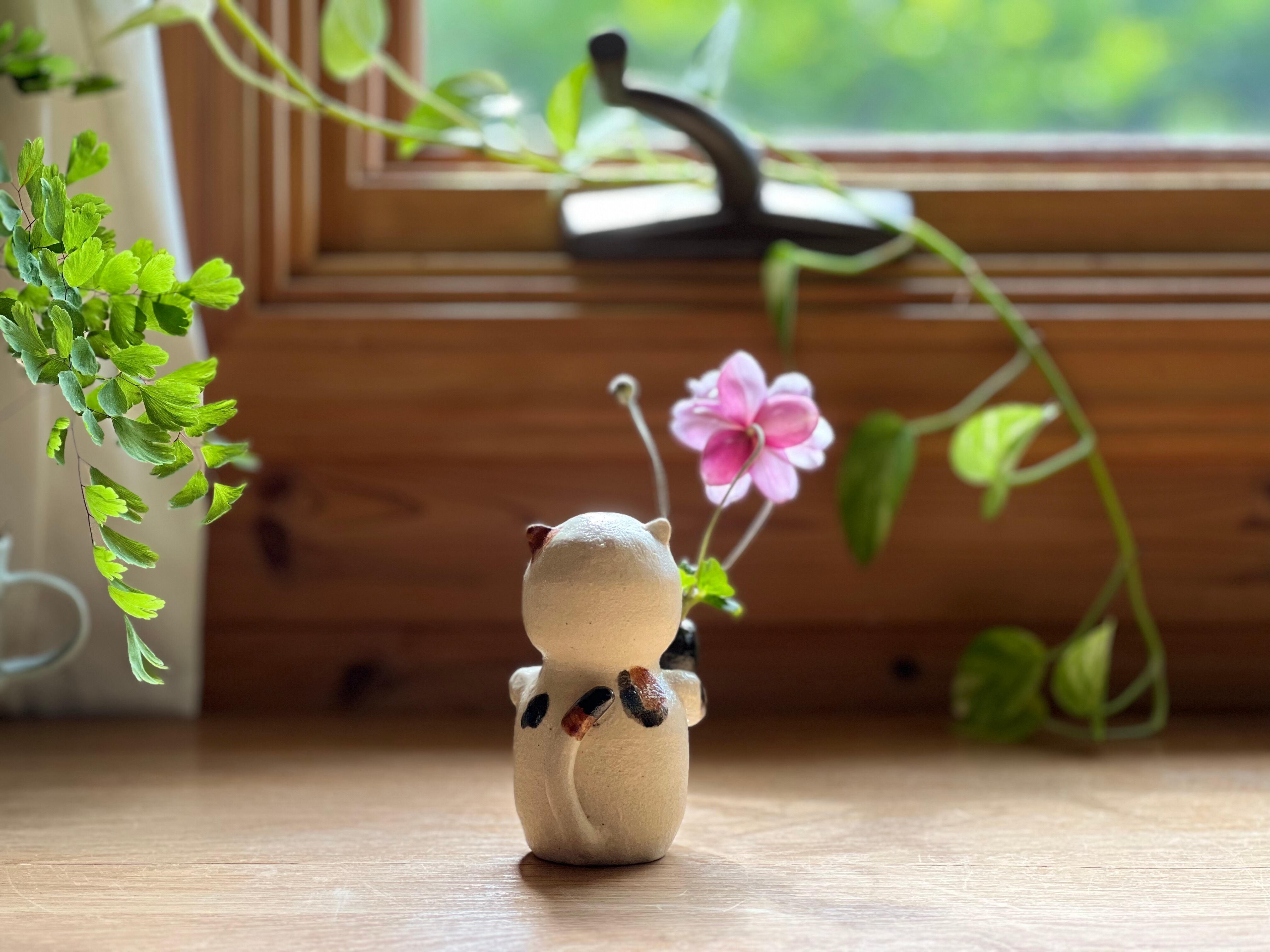 猫さん花瓶は、手作りの陶器製で、ひとつひとつ丁寧に作られています。そのため、それぞれの表情や模様が微妙に異なるのも魅力の一つです。