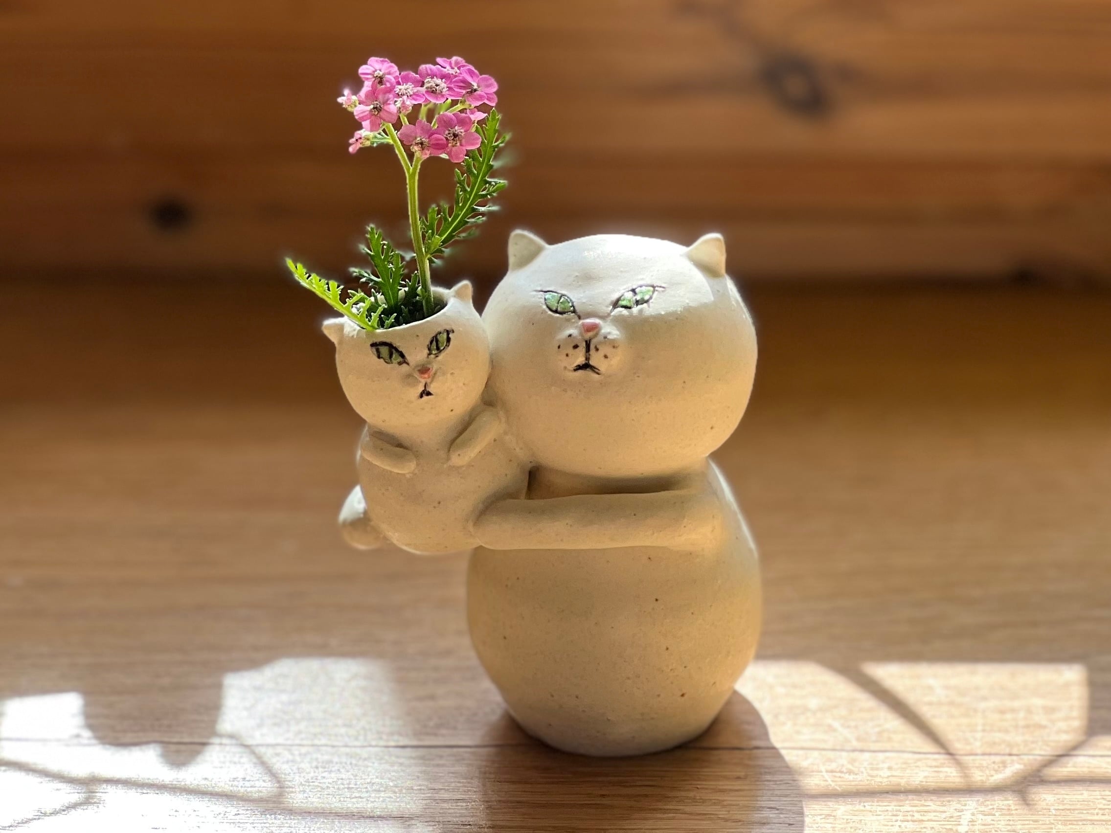 猫さん花瓶 小さい猫さんを抱っこした