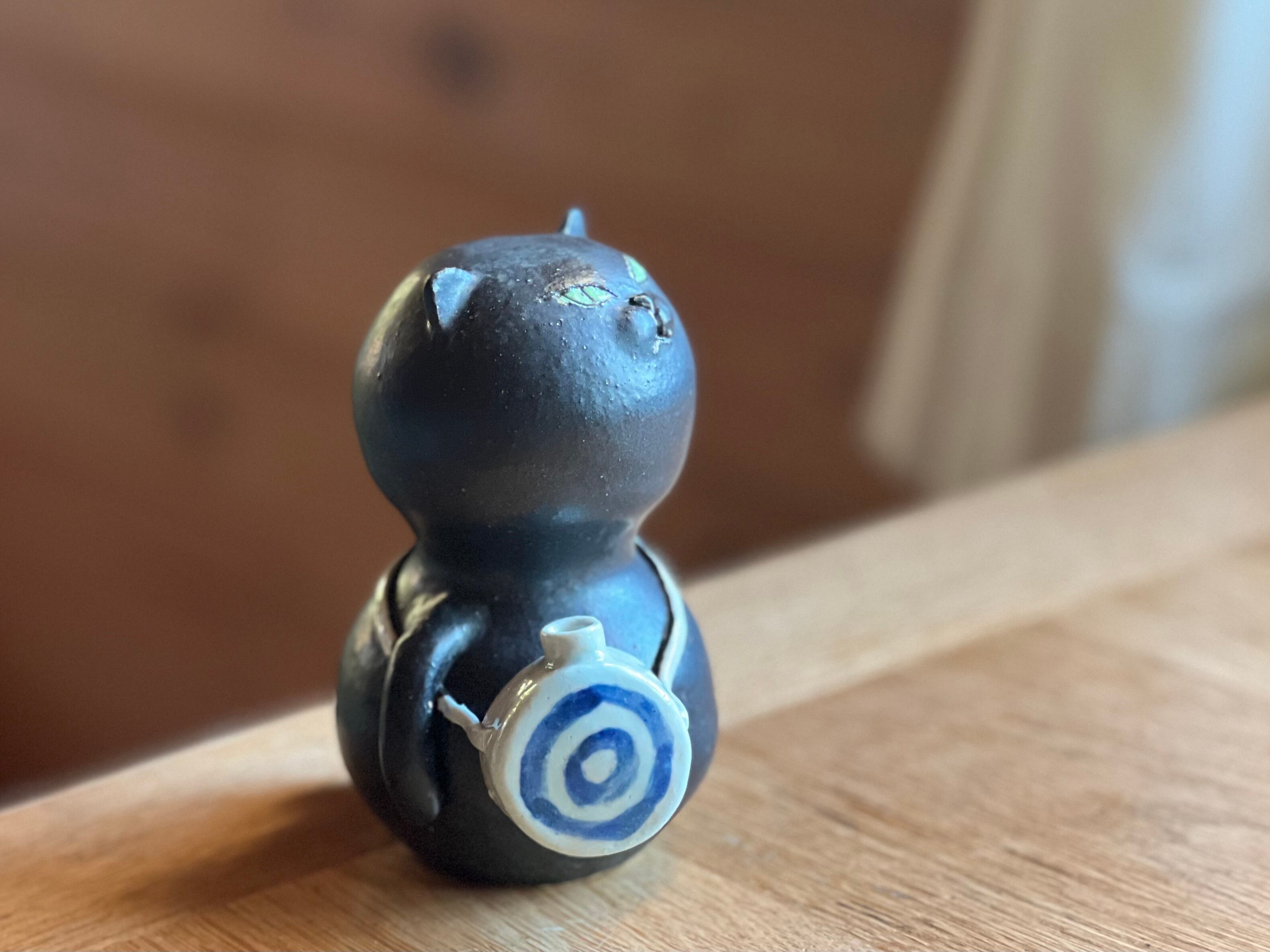 猫さん花瓶 水筒をさげた黒猫さん