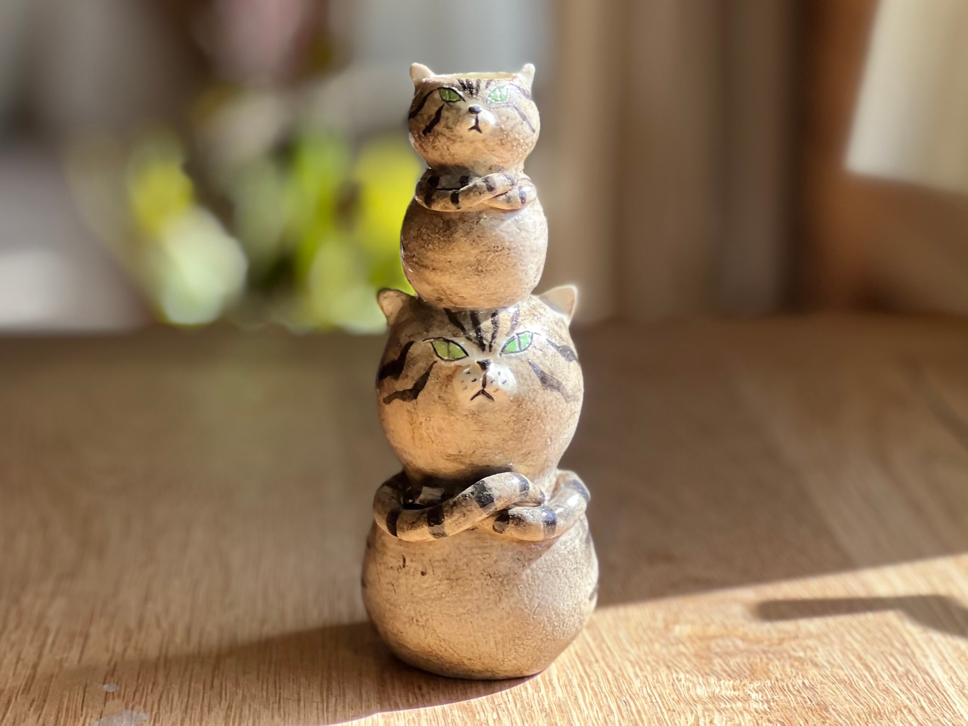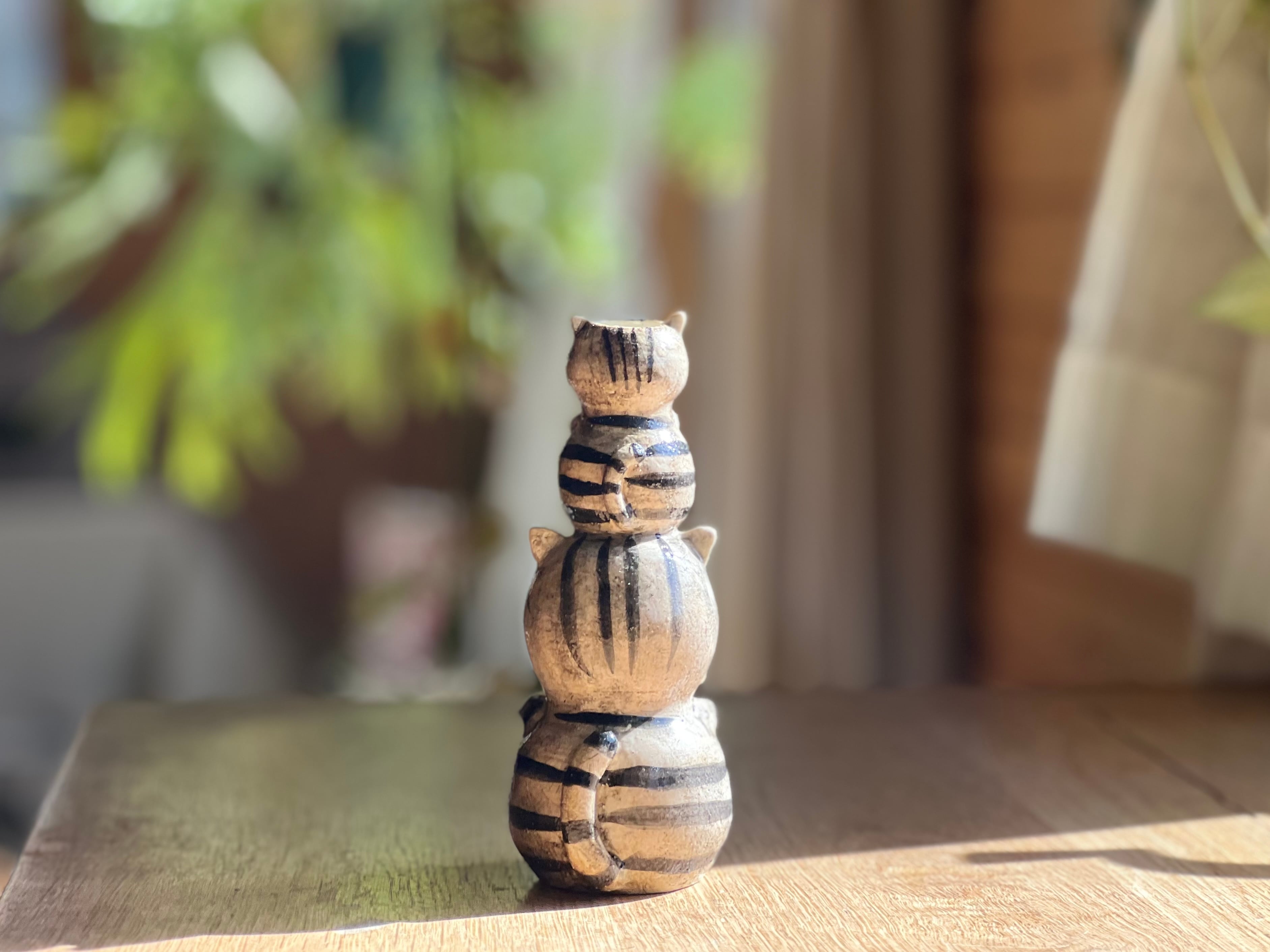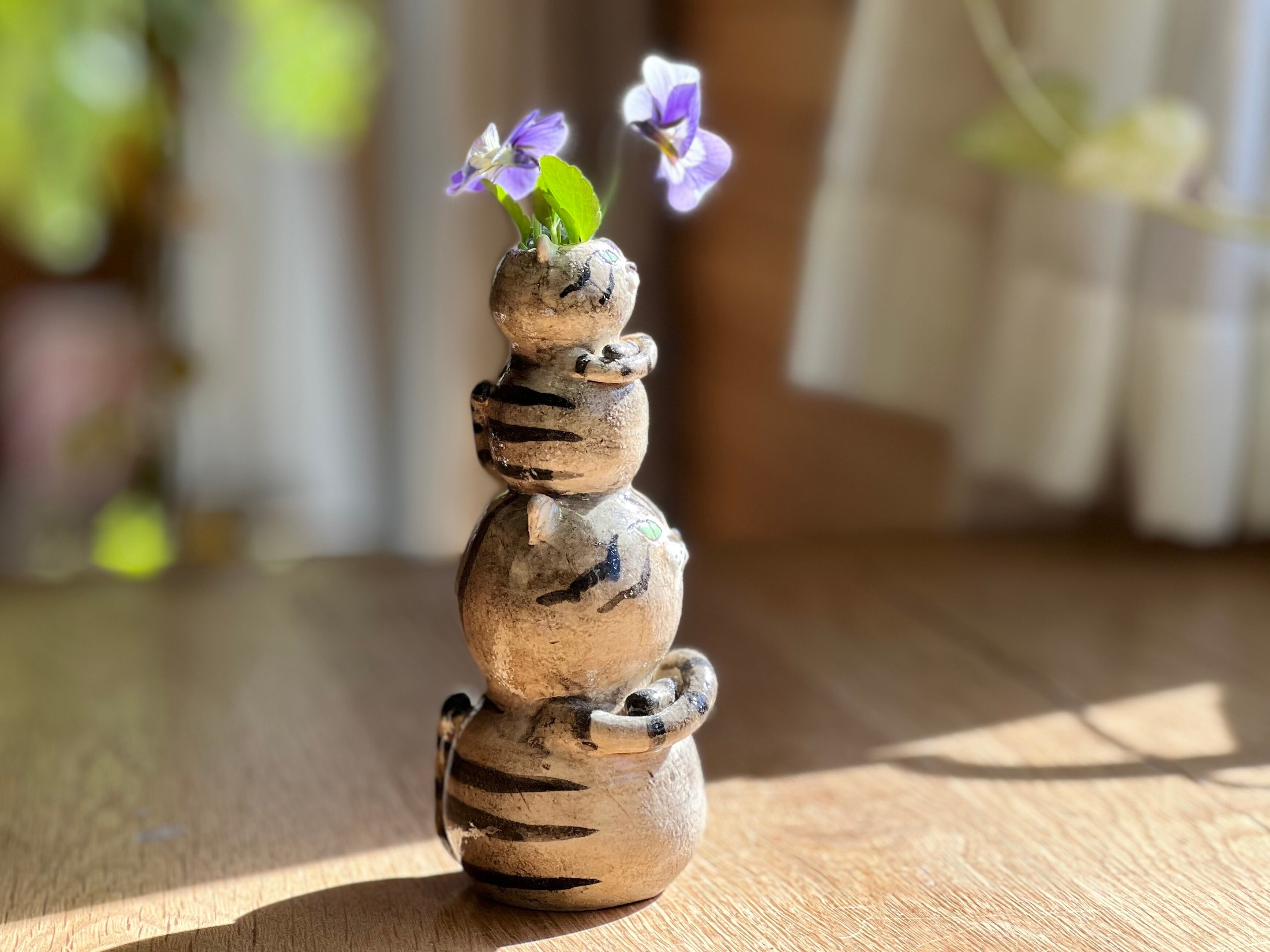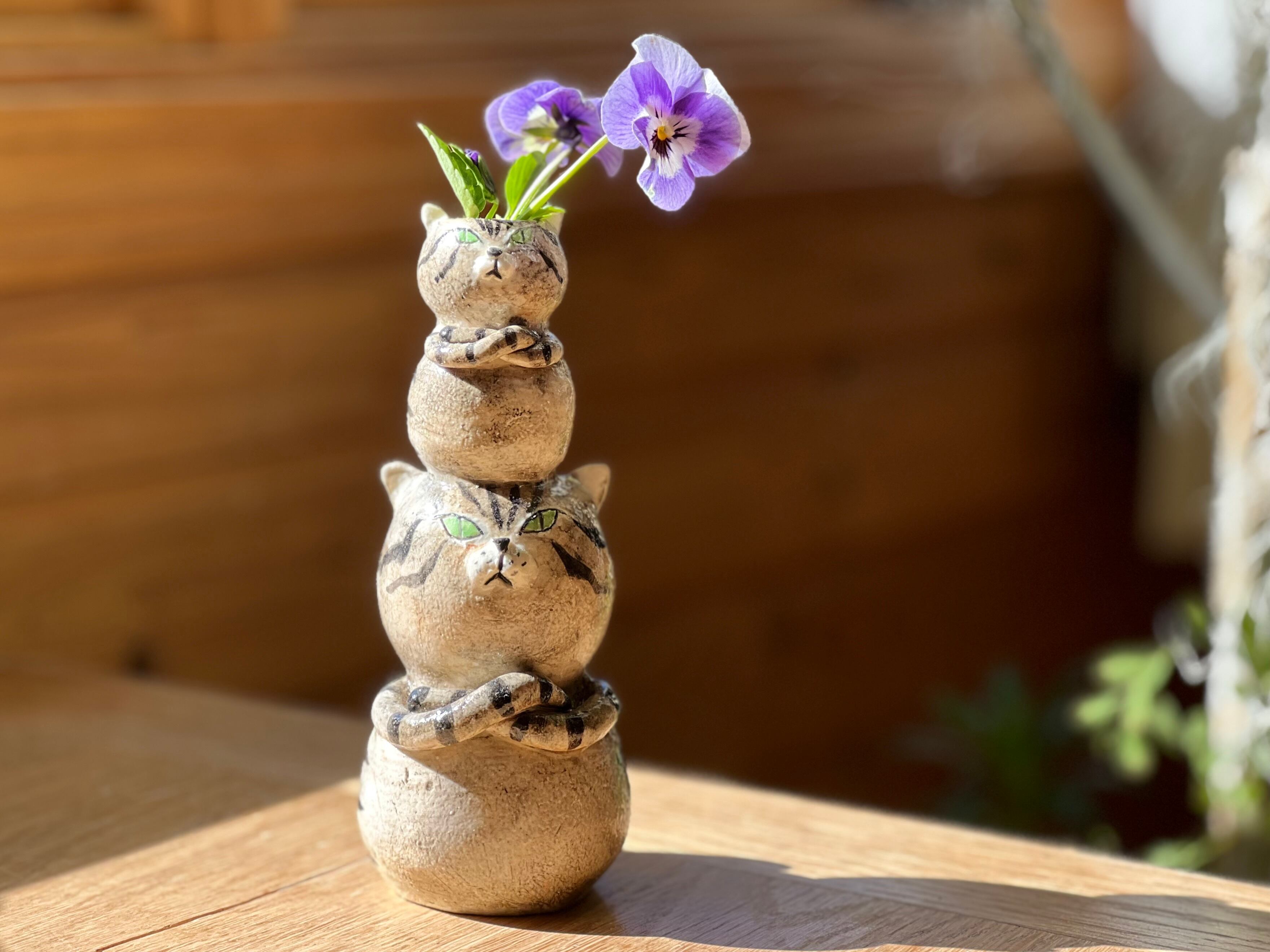 猫さん花瓶 小さい猫さんを頭に乗せたとら猫さん