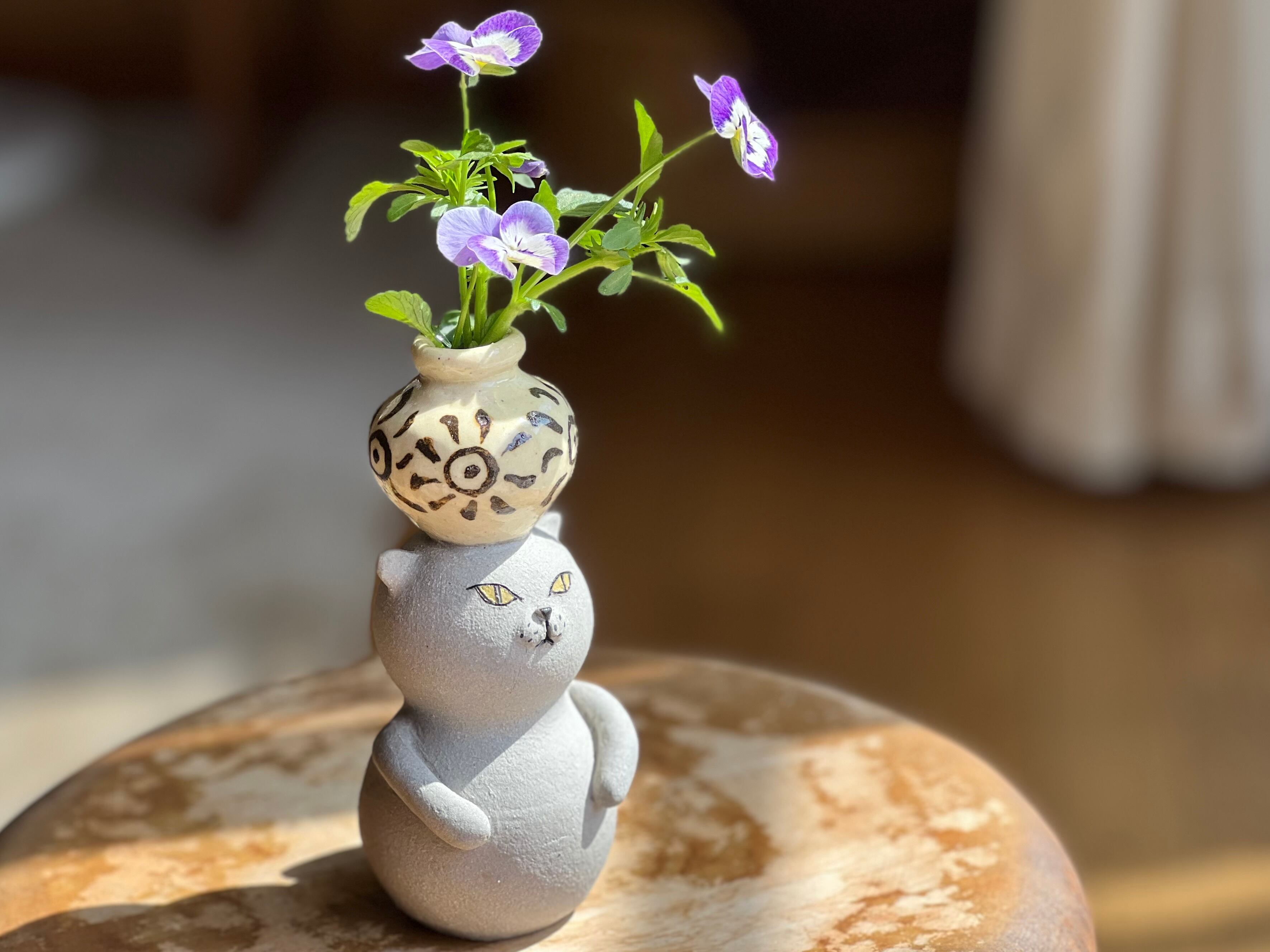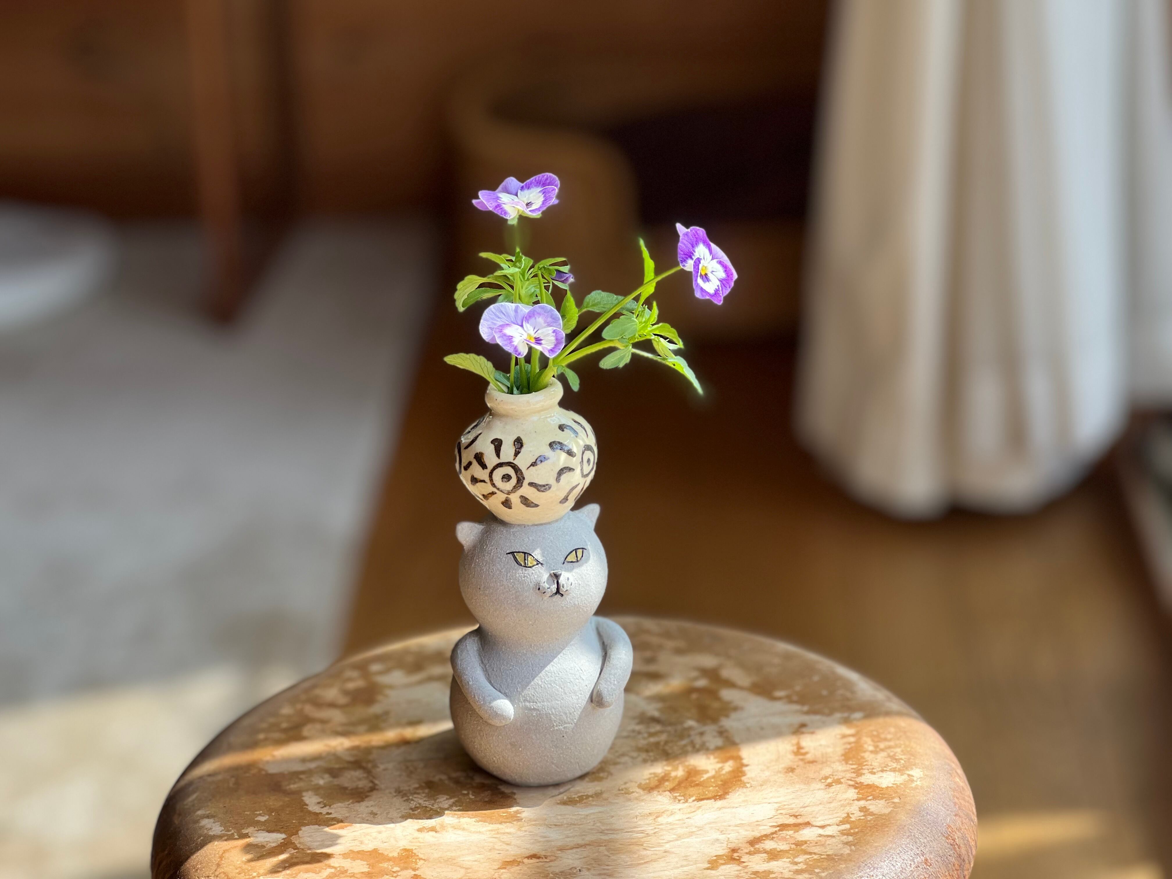 花を生けるだけでなく、ディスプレイとして飾っても素敵な猫さん花瓶。お気に入りの花を飾って、お部屋に一味違った可愛さをプラスしてみてはいかがでしょうか?