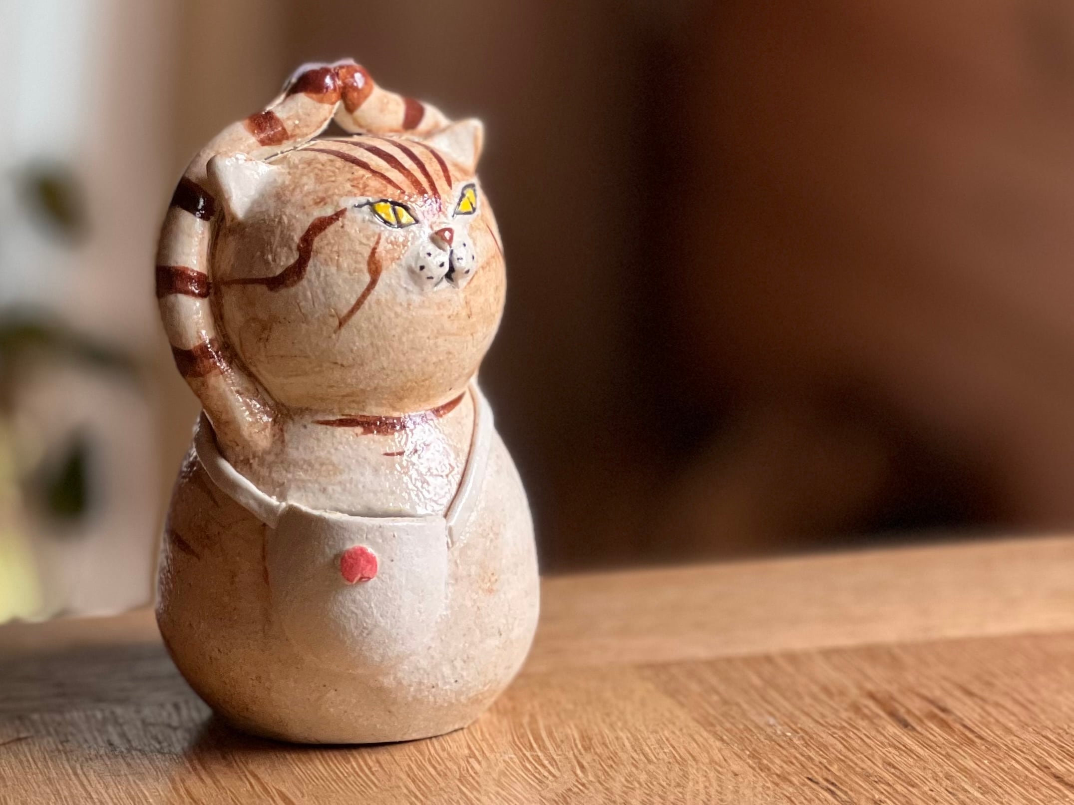 猫さん花瓶は、手作りの陶器製で、ひとつひとつ丁寧に作られています。そのため、それぞれの表情や模様が微妙に異なるのも魅力の一つです。