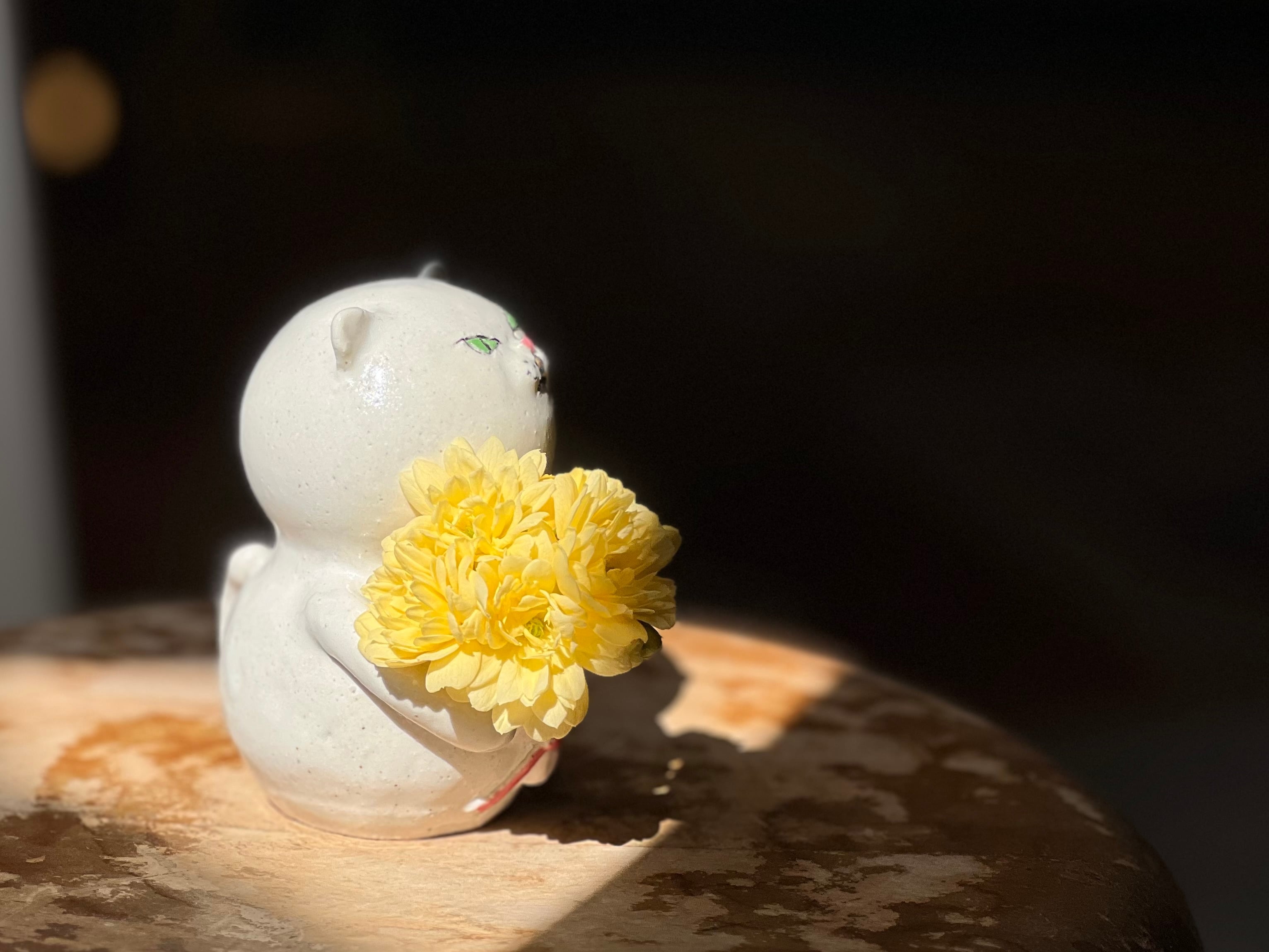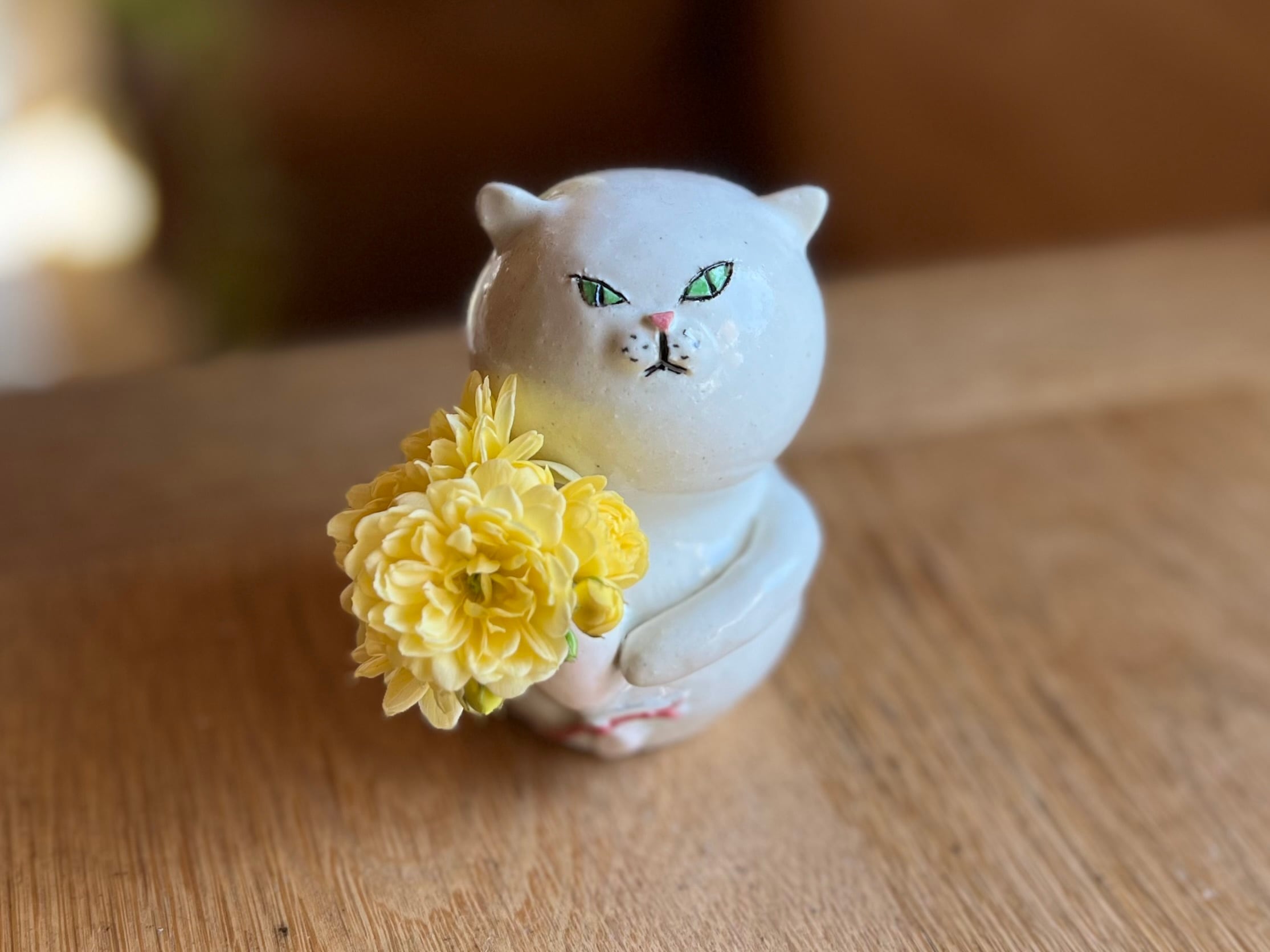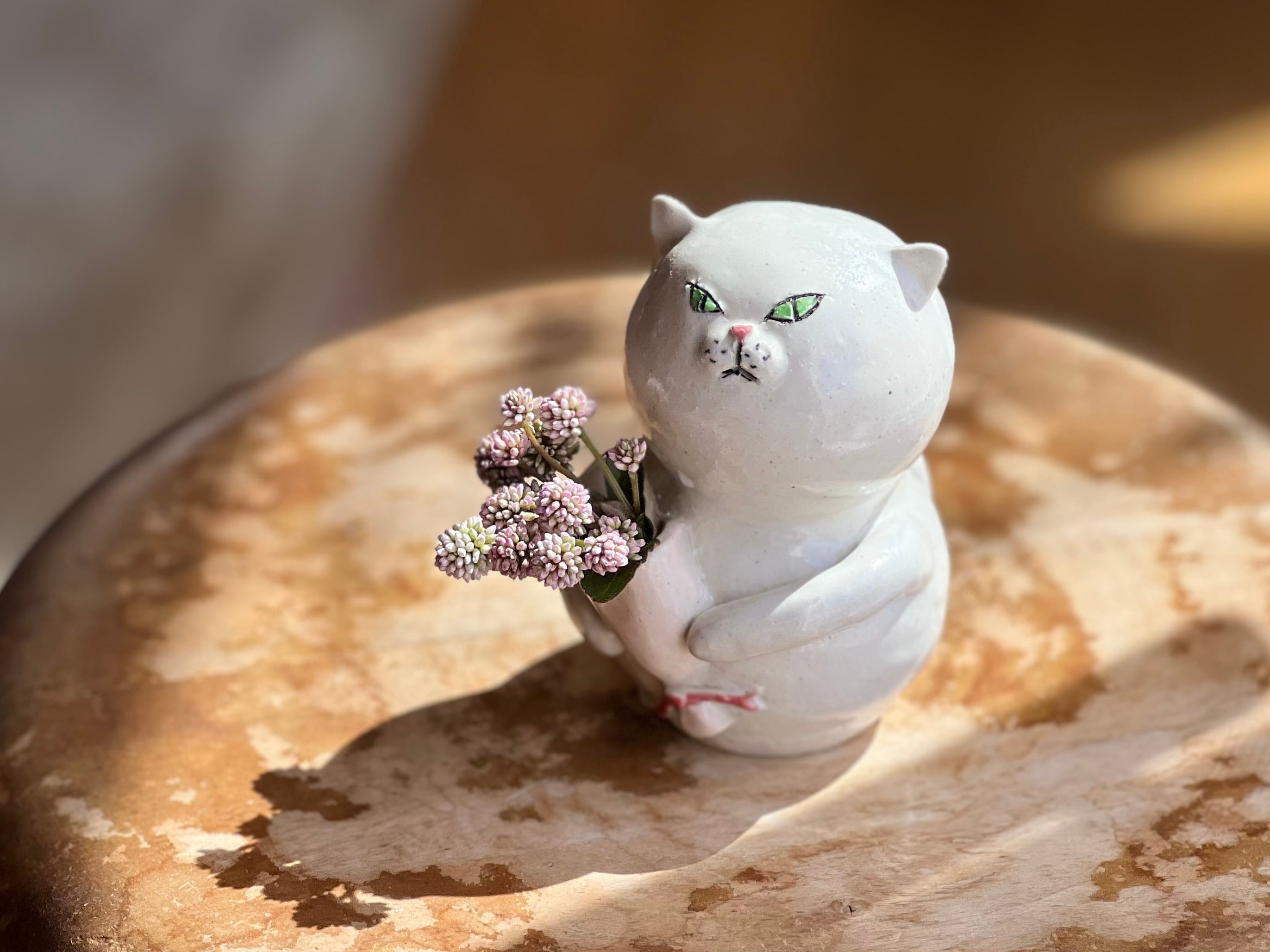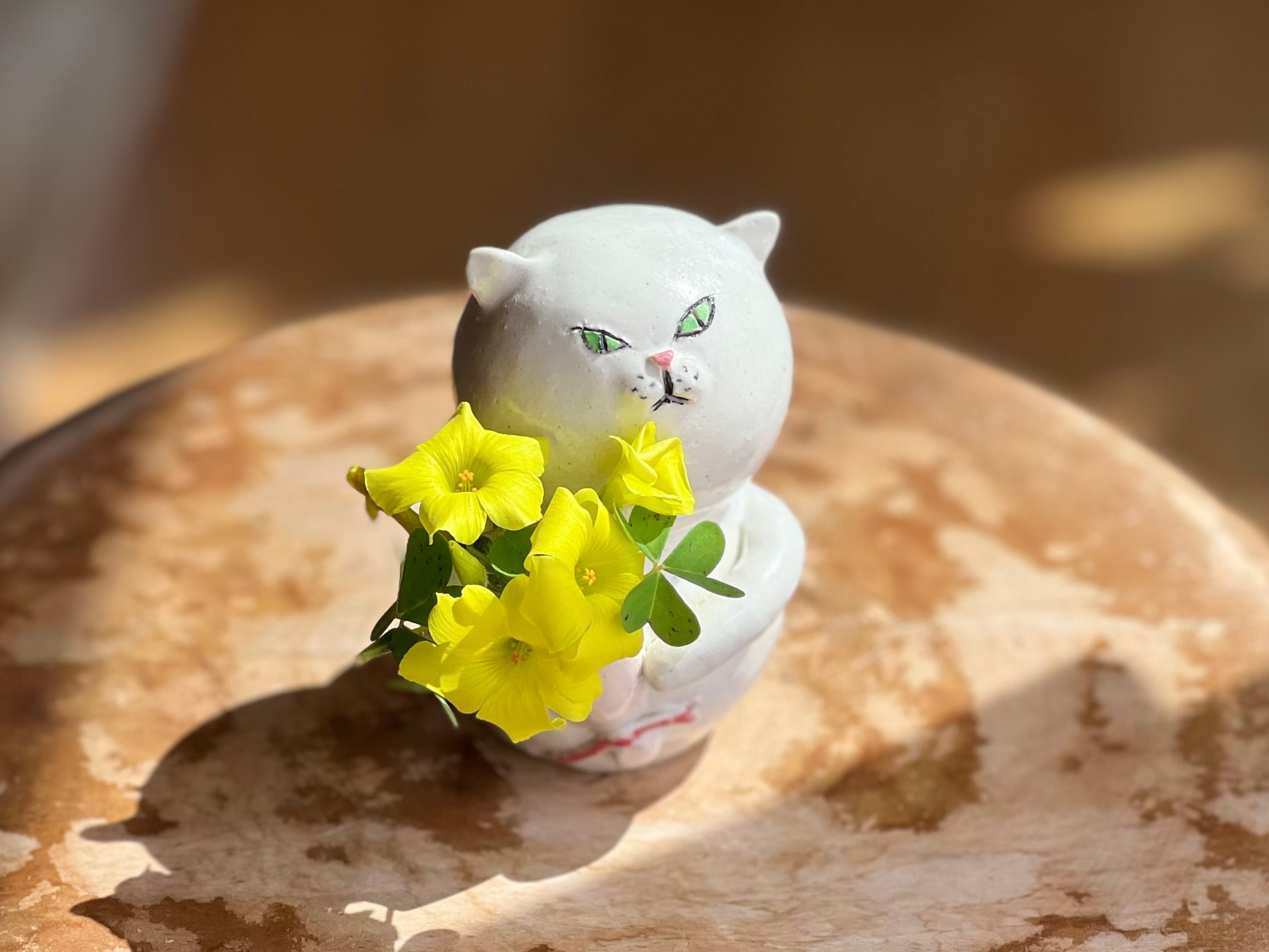 猫さん花瓶 花束を持った白猫さん