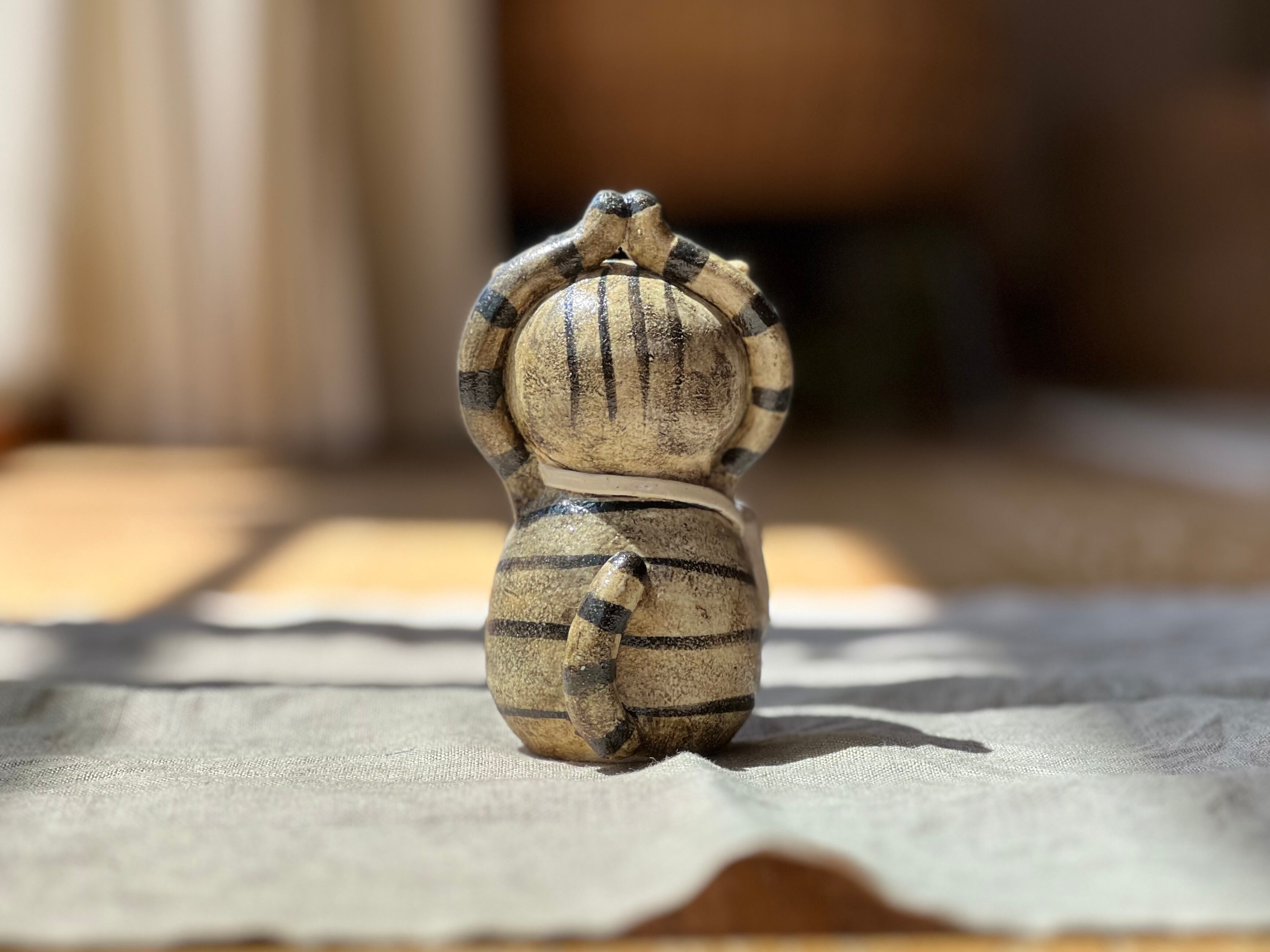 猫さん花瓶は、手作りの陶器製で、ひとつひとつ丁寧に作られています。そのため、それぞれの表情や模様が微妙に異なるのも魅力の一つです。
