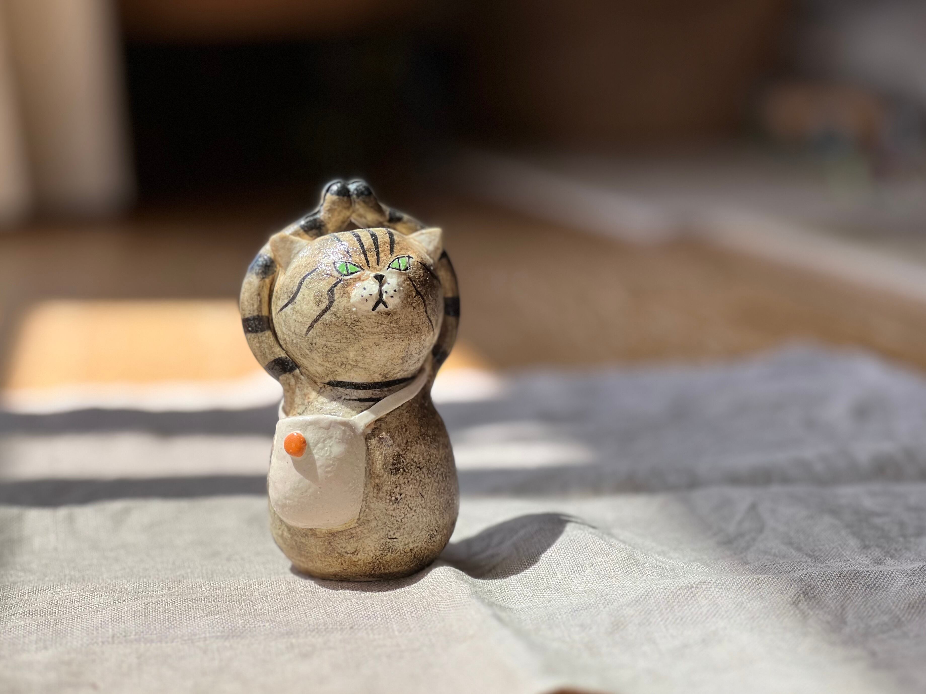 猫さん花瓶 カードを持てるポシェットさげたとら猫さん