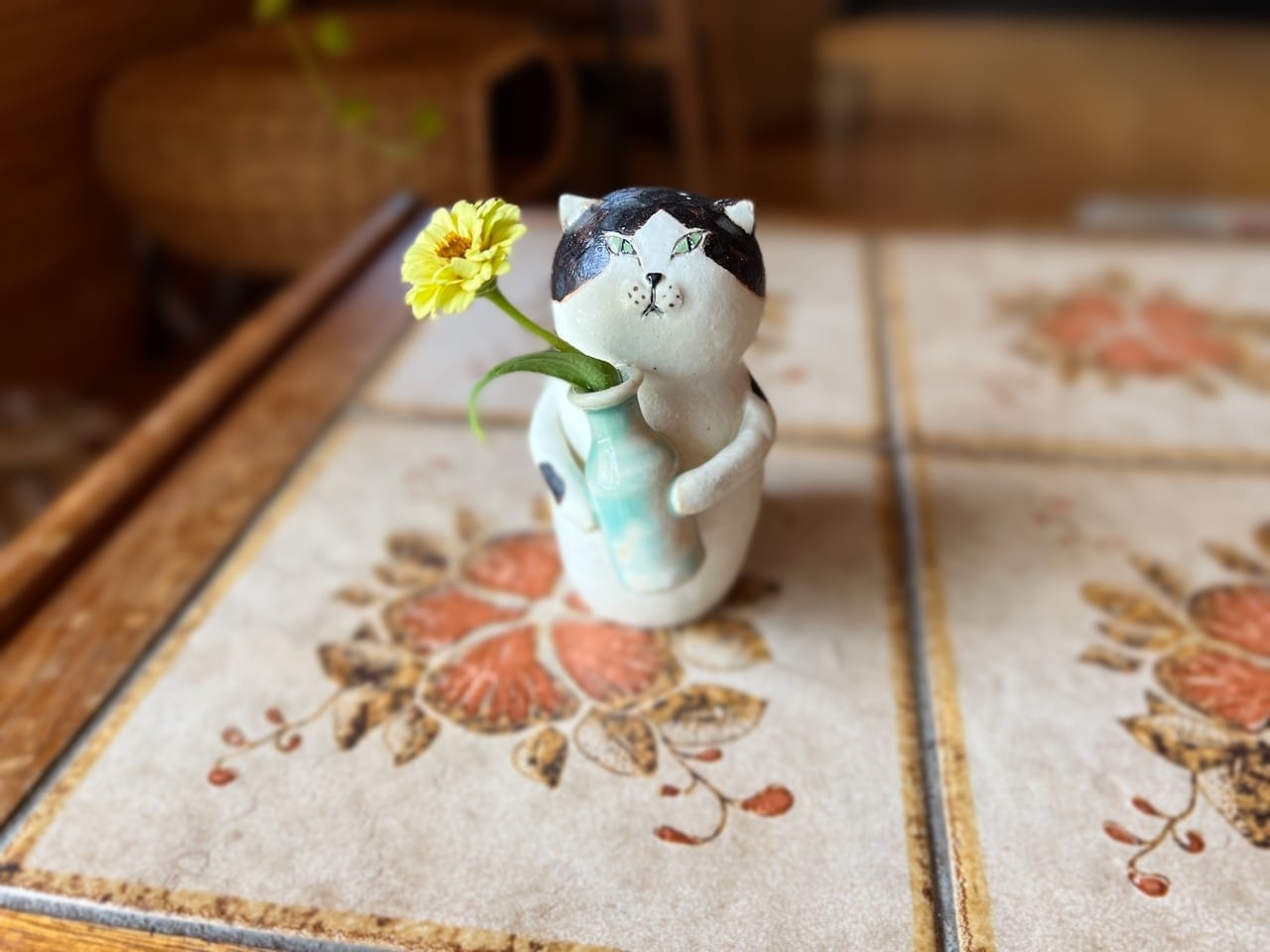猫さん花瓶は、手作りの陶器製で、ひとつひとつ丁寧に作られています。そのため、それぞれの表情や模様が微妙に異なるのも魅力の一つです。