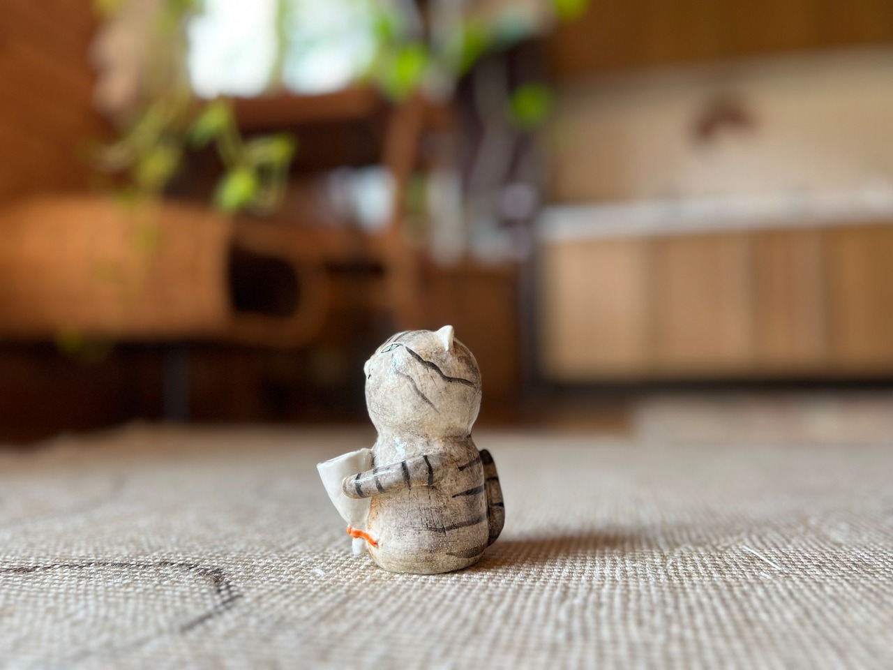 猫さん花瓶は、手作りの陶器製で、ひとつひとつ丁寧に作られています。そのため、それぞれの表情や模様が微妙に異なるのも魅力の一つです。
