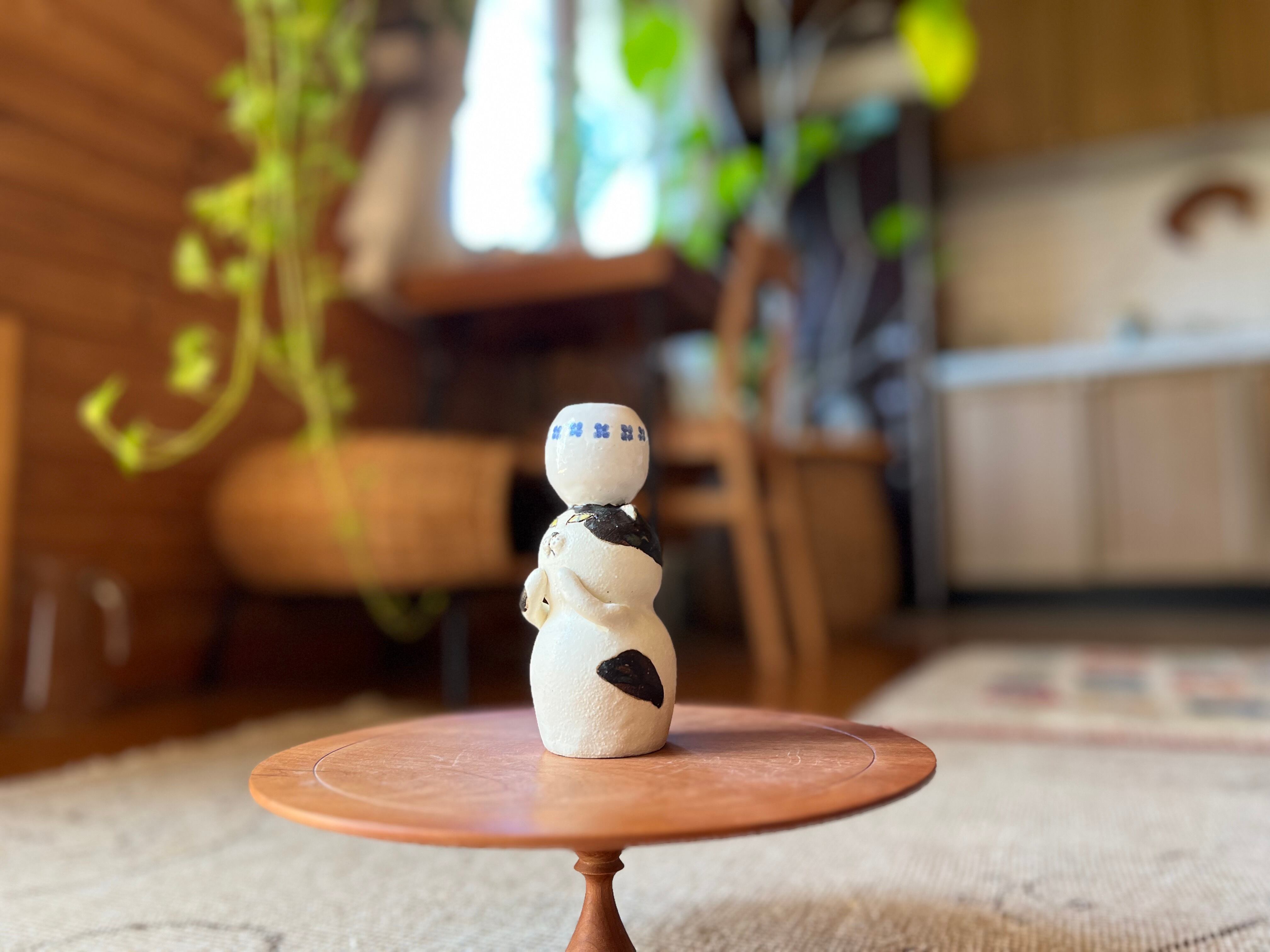 白黒ねこさんが花瓶を持った一輪挿しです。猫好きの方や花を飾るのが好きな方にぴったりのアイテムです。