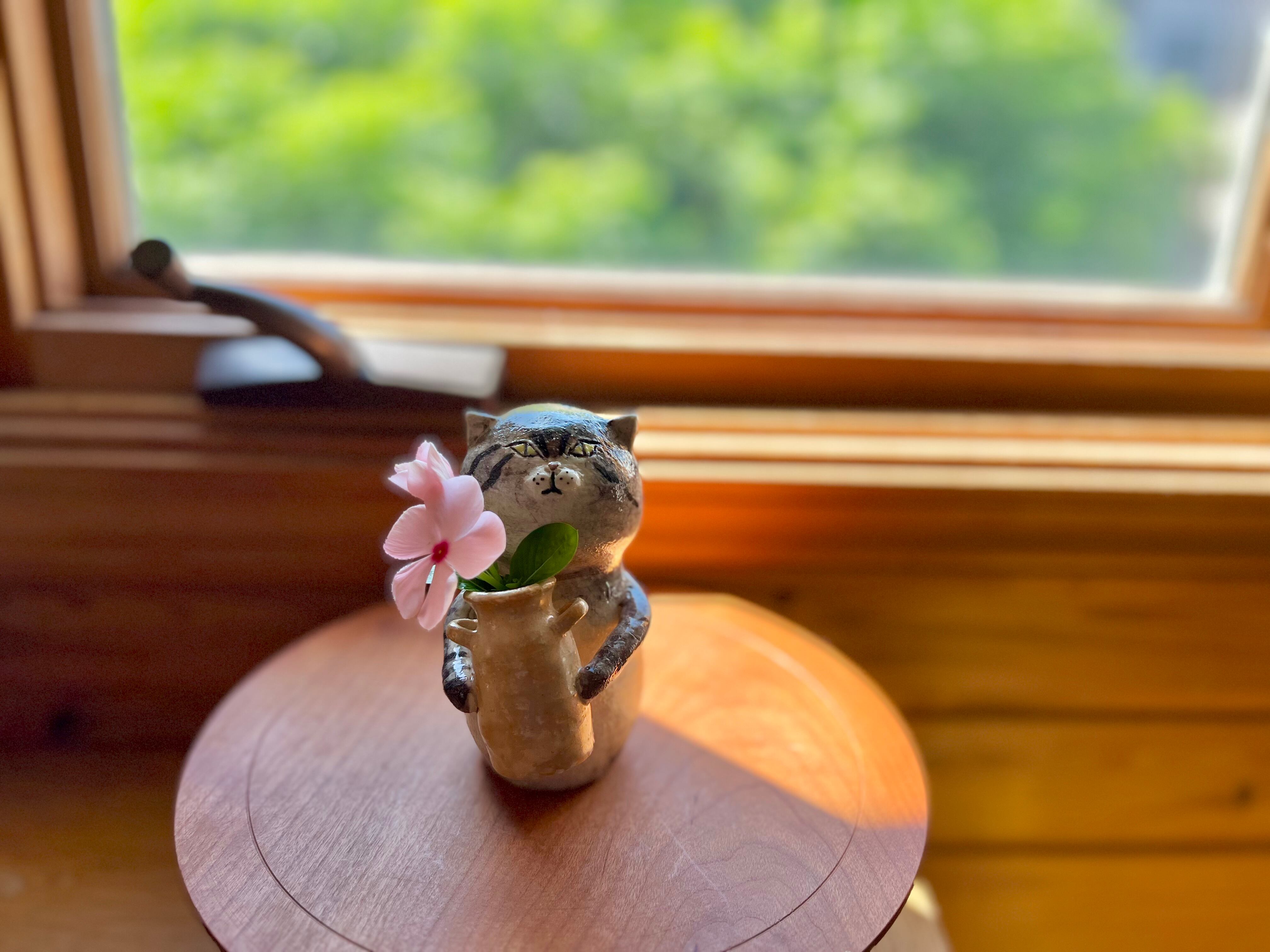猫さん花瓶は、手作りの陶器製で、ひとつひとつ丁寧に作られています。そのため、それぞれの表情や模様が微妙に異なるのも魅力の一つです。