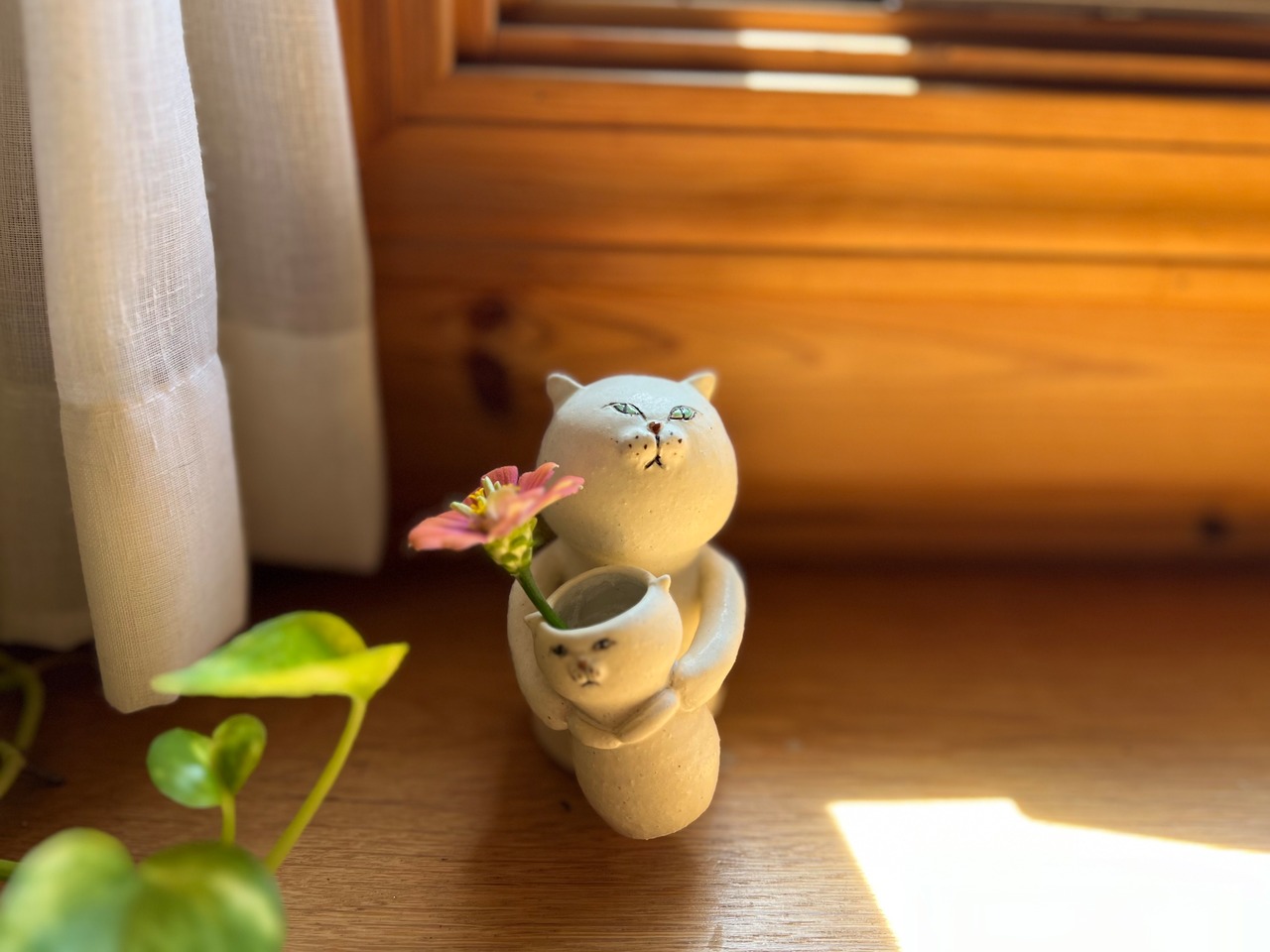 花を生けるだけでなく、ディスプレイとして飾っても素敵な猫さん花瓶。お気に入りの花を飾って、お部屋に一味違った可愛さをプラスしてみてはいかがでしょうか?