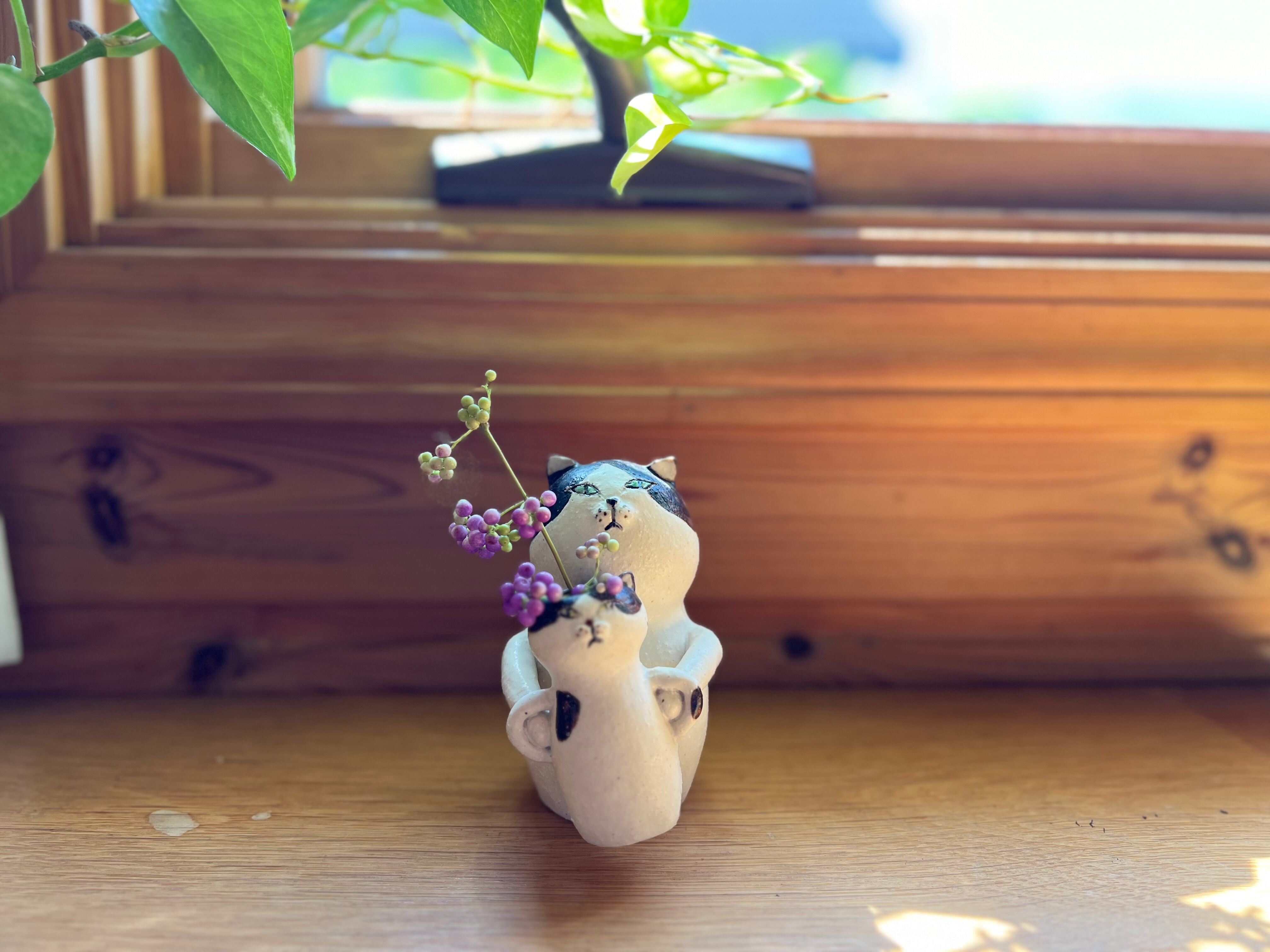 花を生けるだけでなく、ディスプレイとして飾っても素敵な猫さん花瓶。お気に入りの花を飾って、お部屋に一味違った可愛さをプラスしてみてはいかがでしょうか?