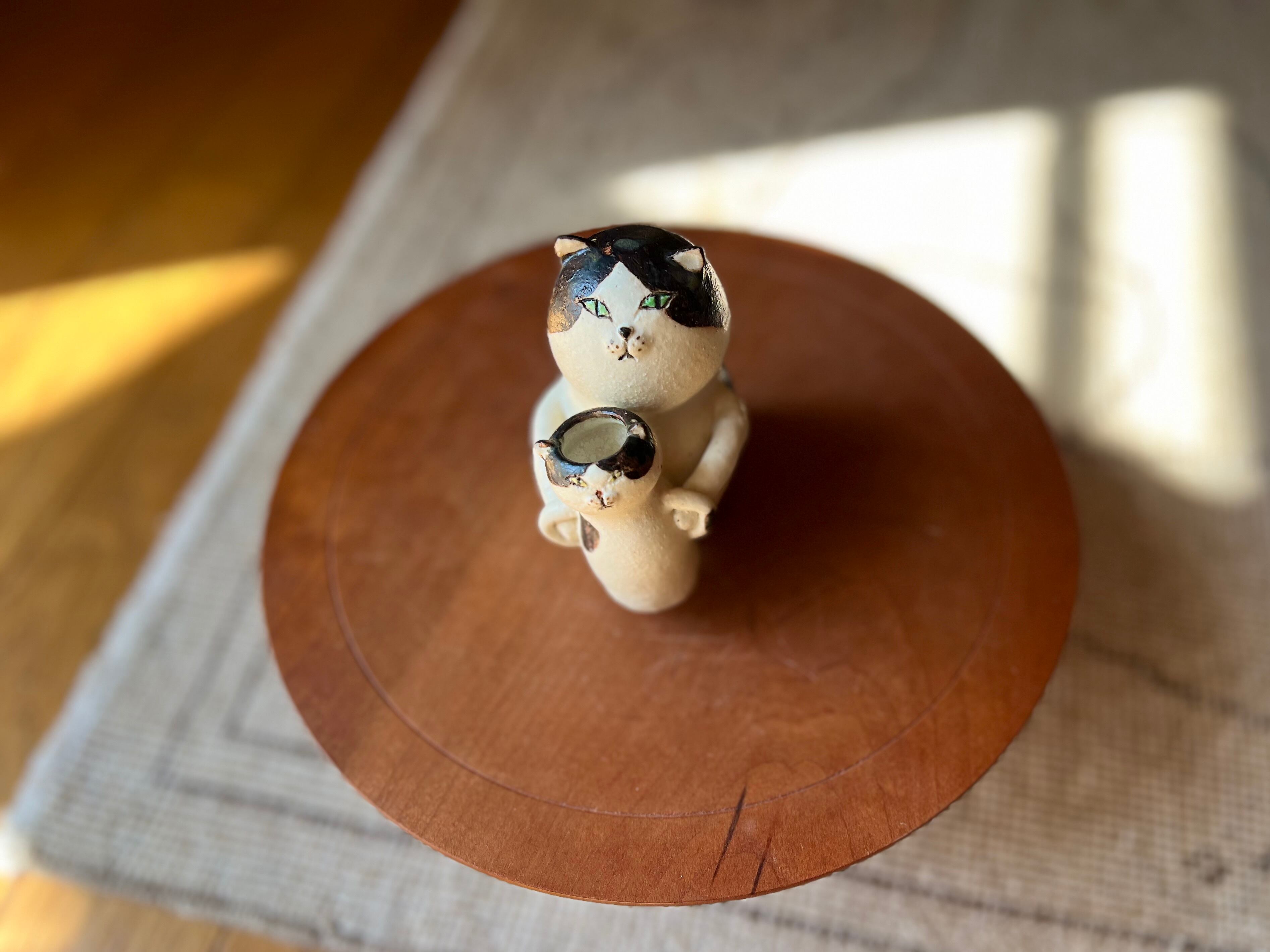 猫さん花瓶 ハチワレさんを抱っこしたハチワレさん