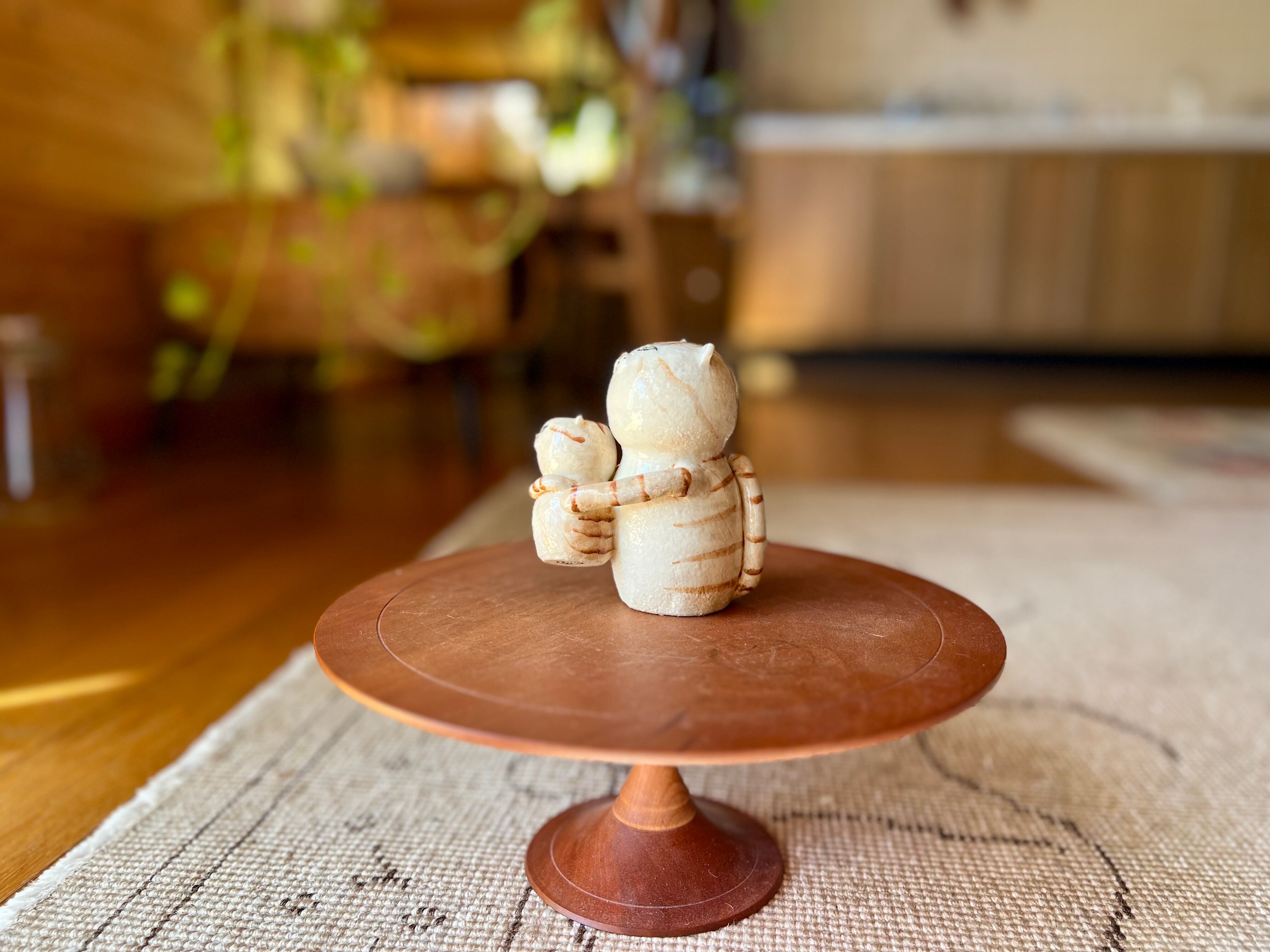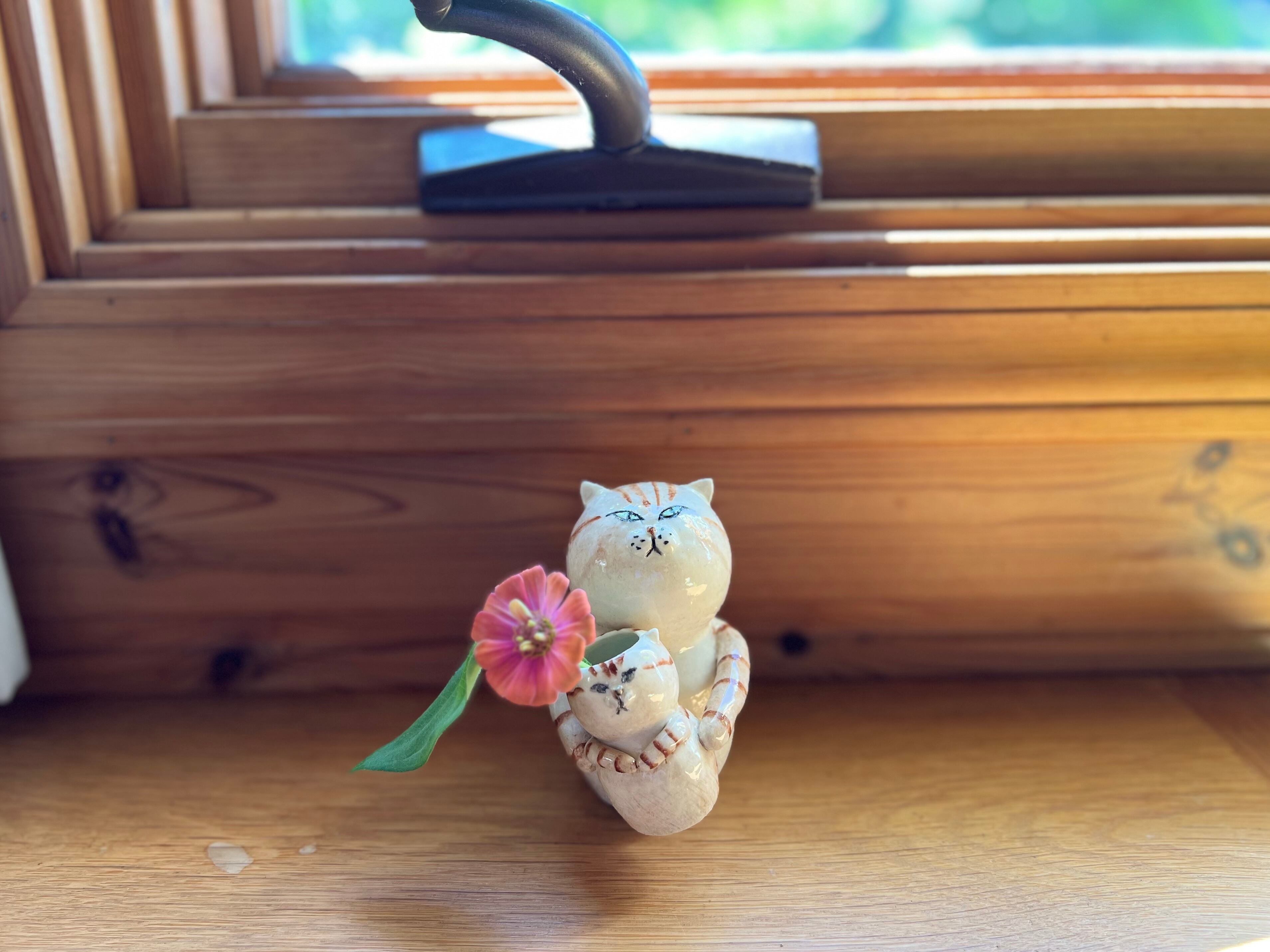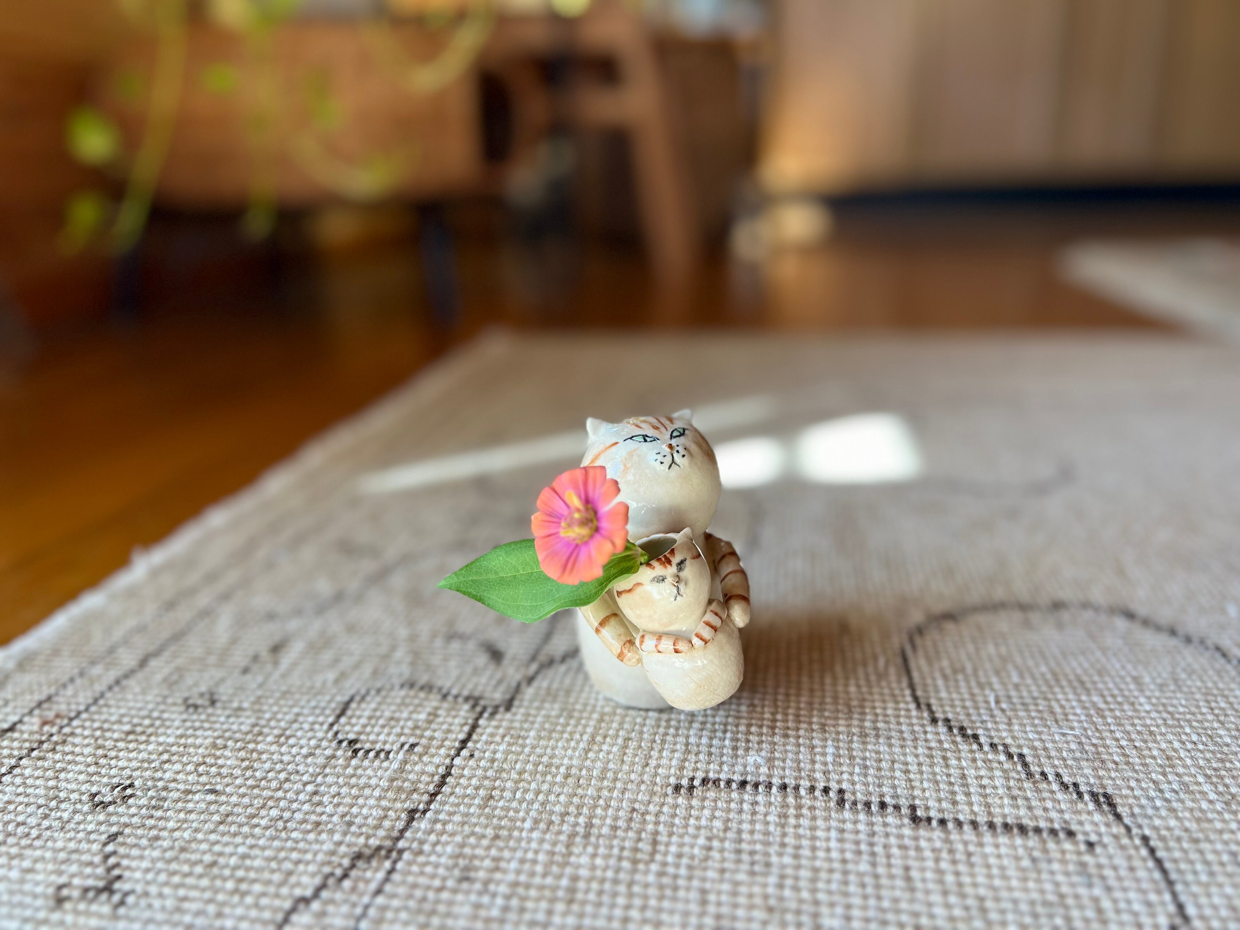 茶トラ猫さんが小さい猫さんを持った一輪挿しです。猫好きの方や花を飾るのが好きな方にぴったりのアイテムです。