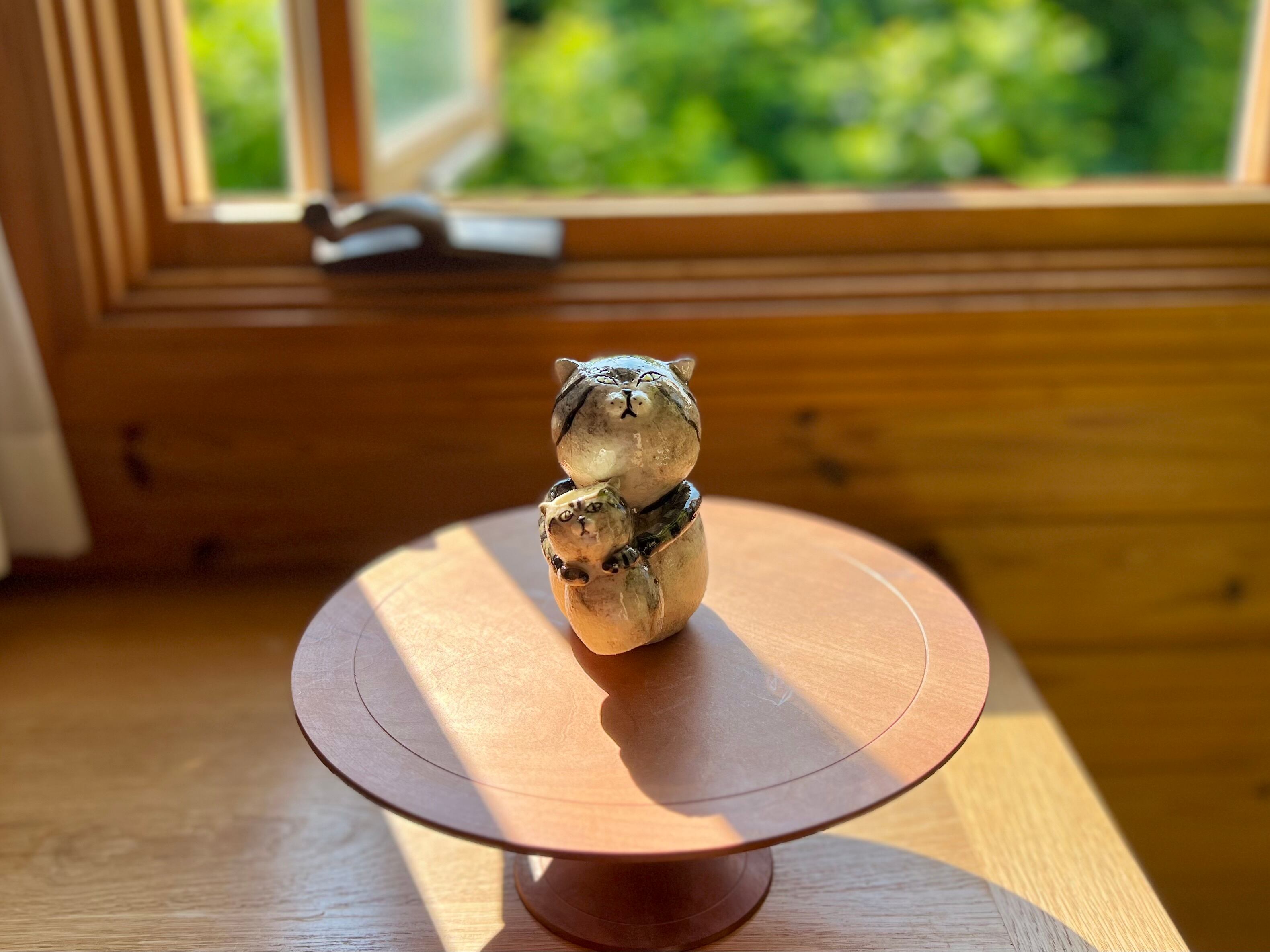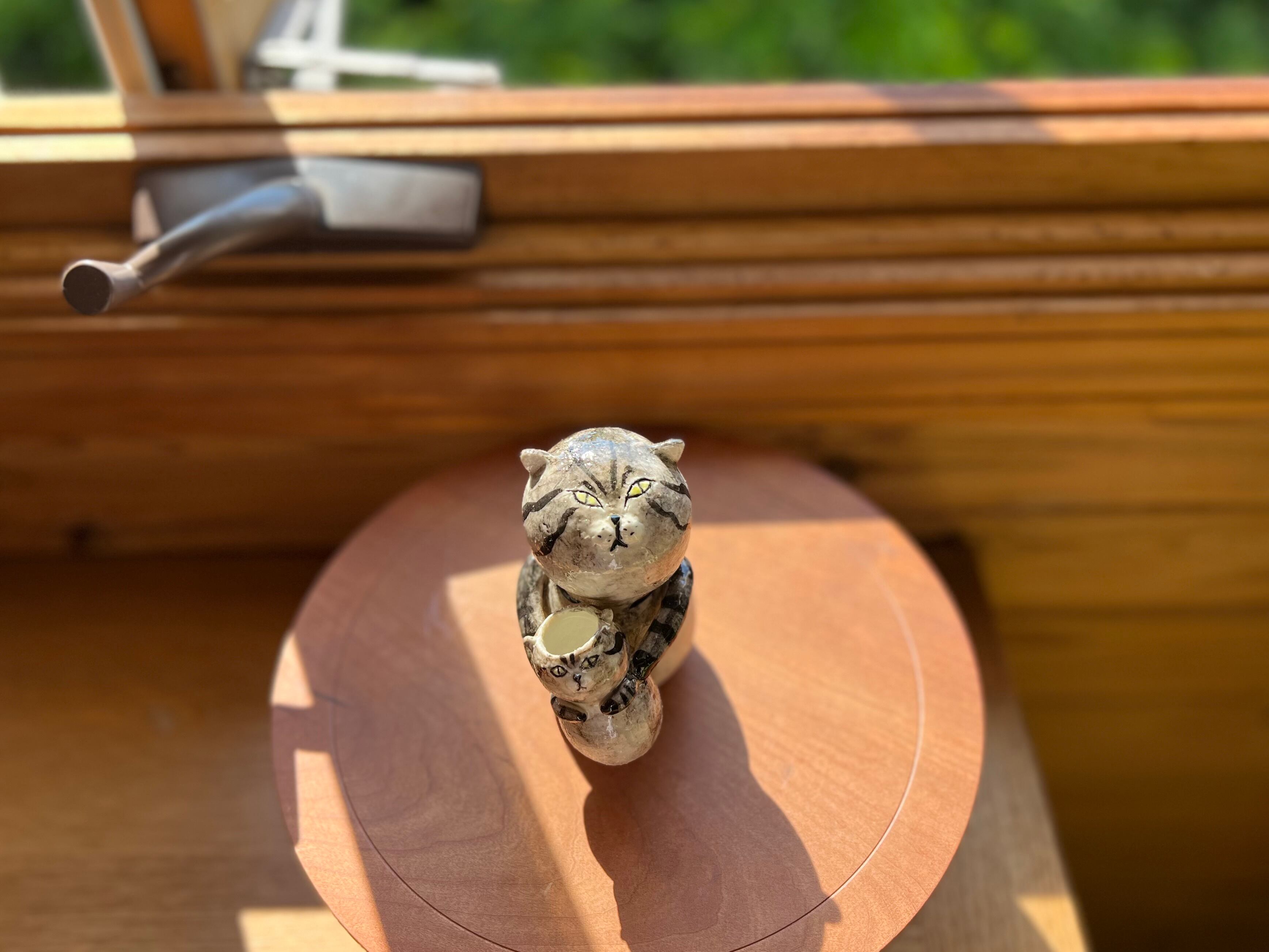 キジトラ猫さんが小さい猫さんを持った一輪挿しです。猫好きの方や花を飾るのが好きな方にぴったりのアイテムです。