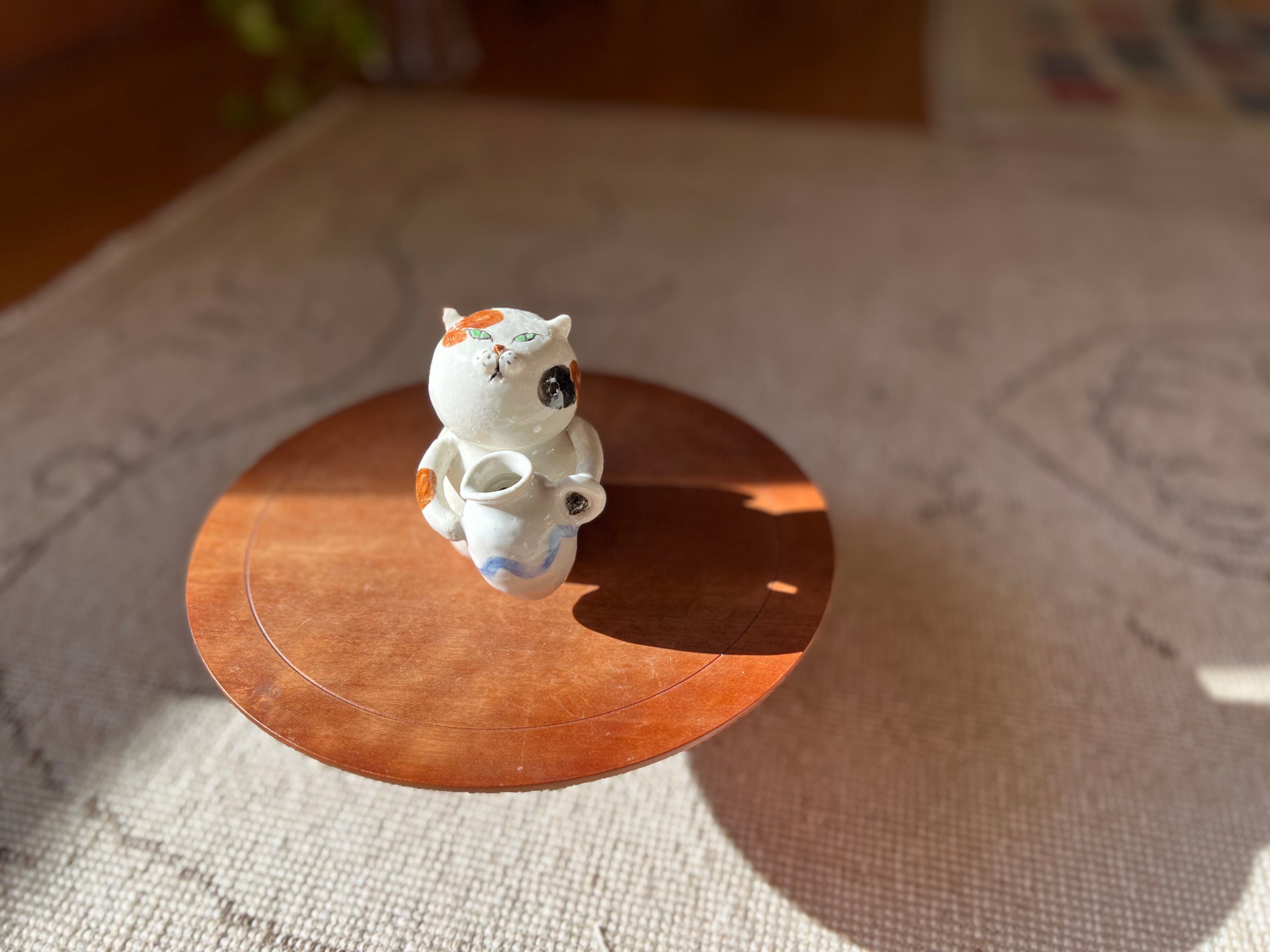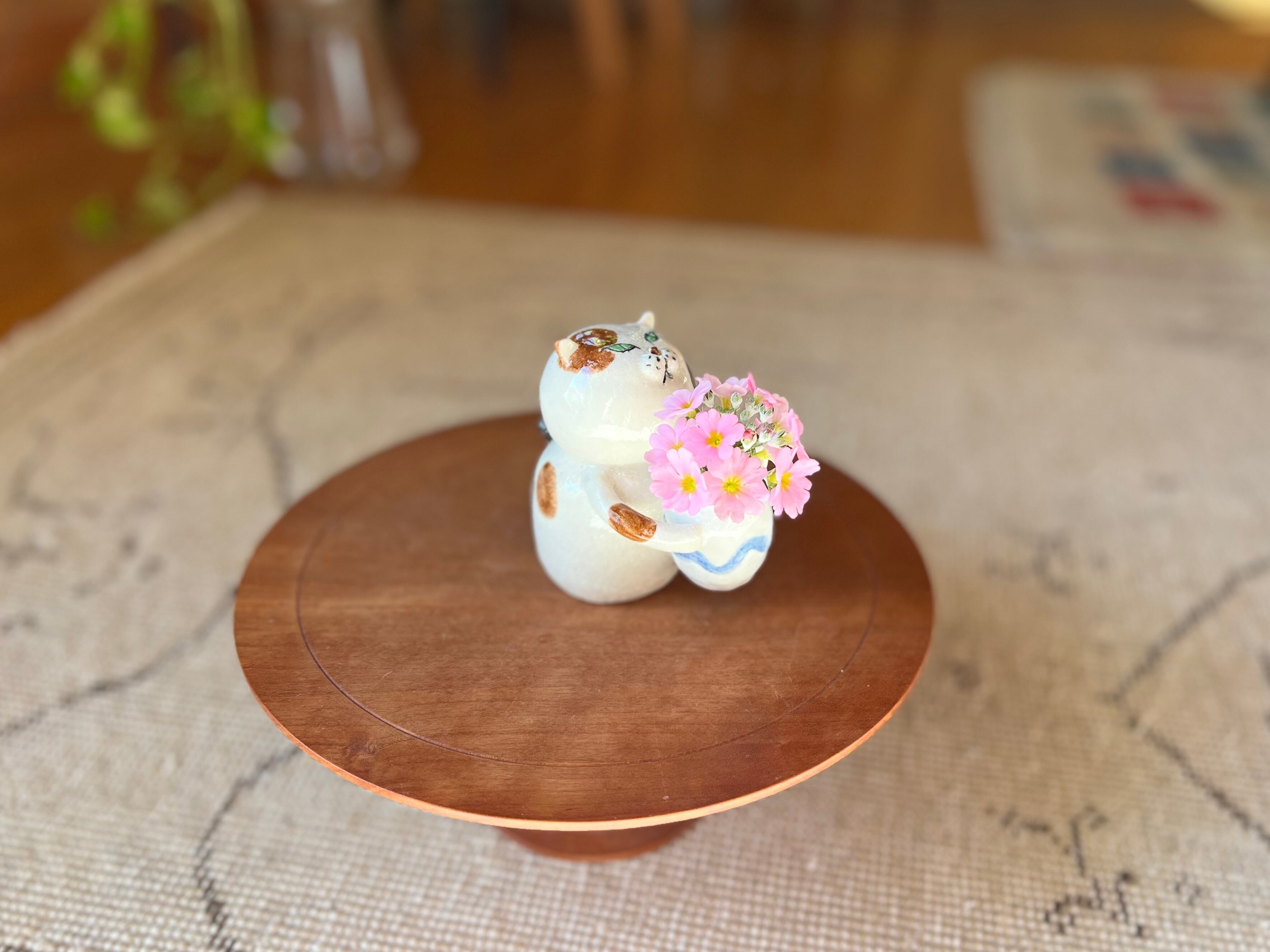 三毛猫さんが花瓶を持った一輪挿しです。猫好きの方や花を飾るのが好きな方にぴったりのアイテムです。