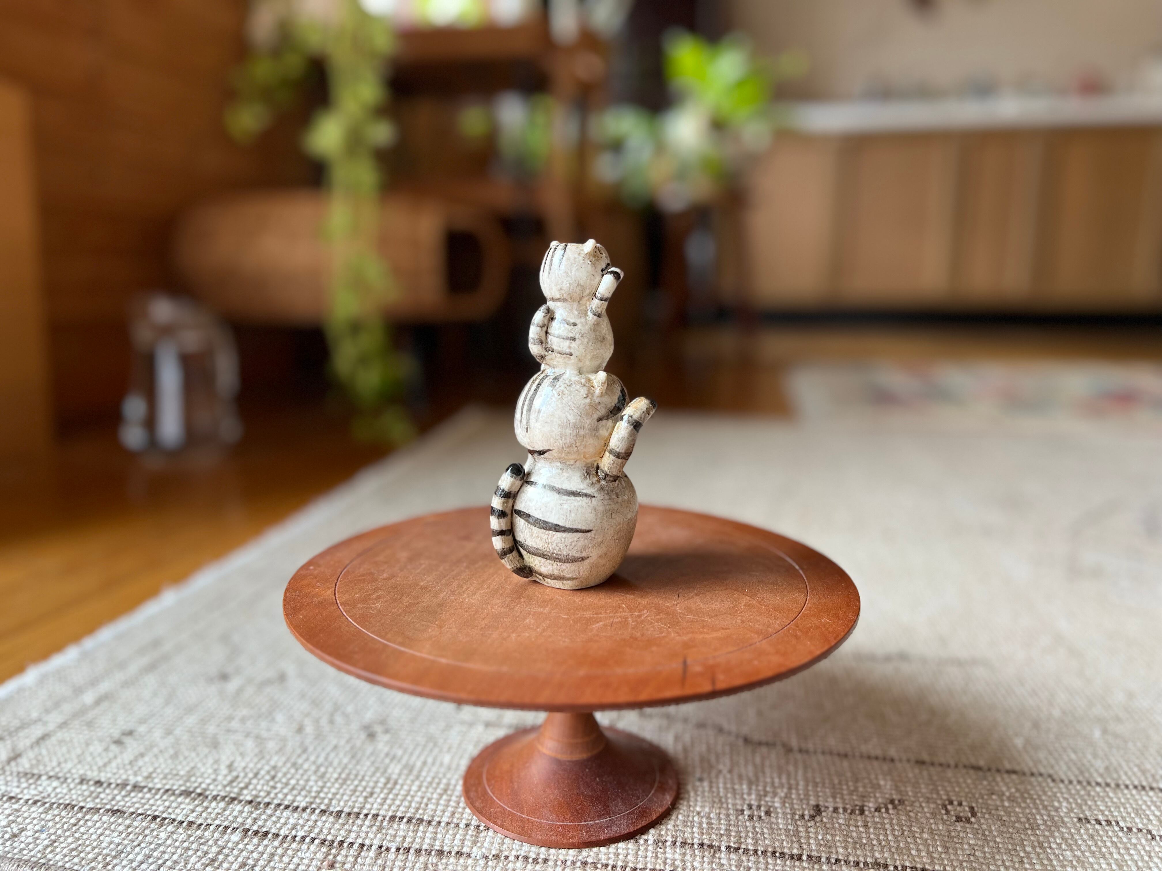 猫さん花瓶 頭の上に小さい猫さんを乗せたトラ猫さん花瓶