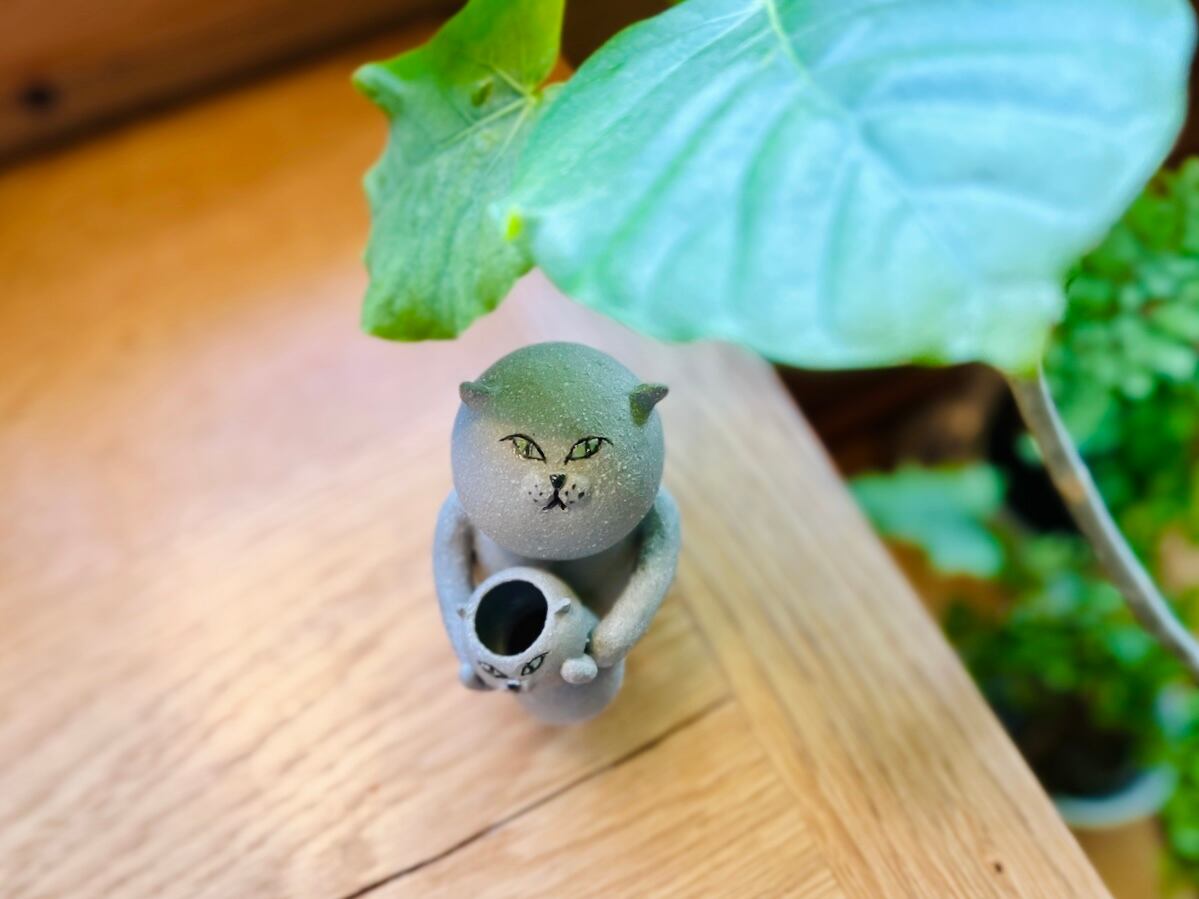 猫さん花瓶は、手作りの陶器製で、ひとつひとつ丁寧に作られています。そのため、それぞれの表情や模様が微妙に異なるのも魅力の一つです。