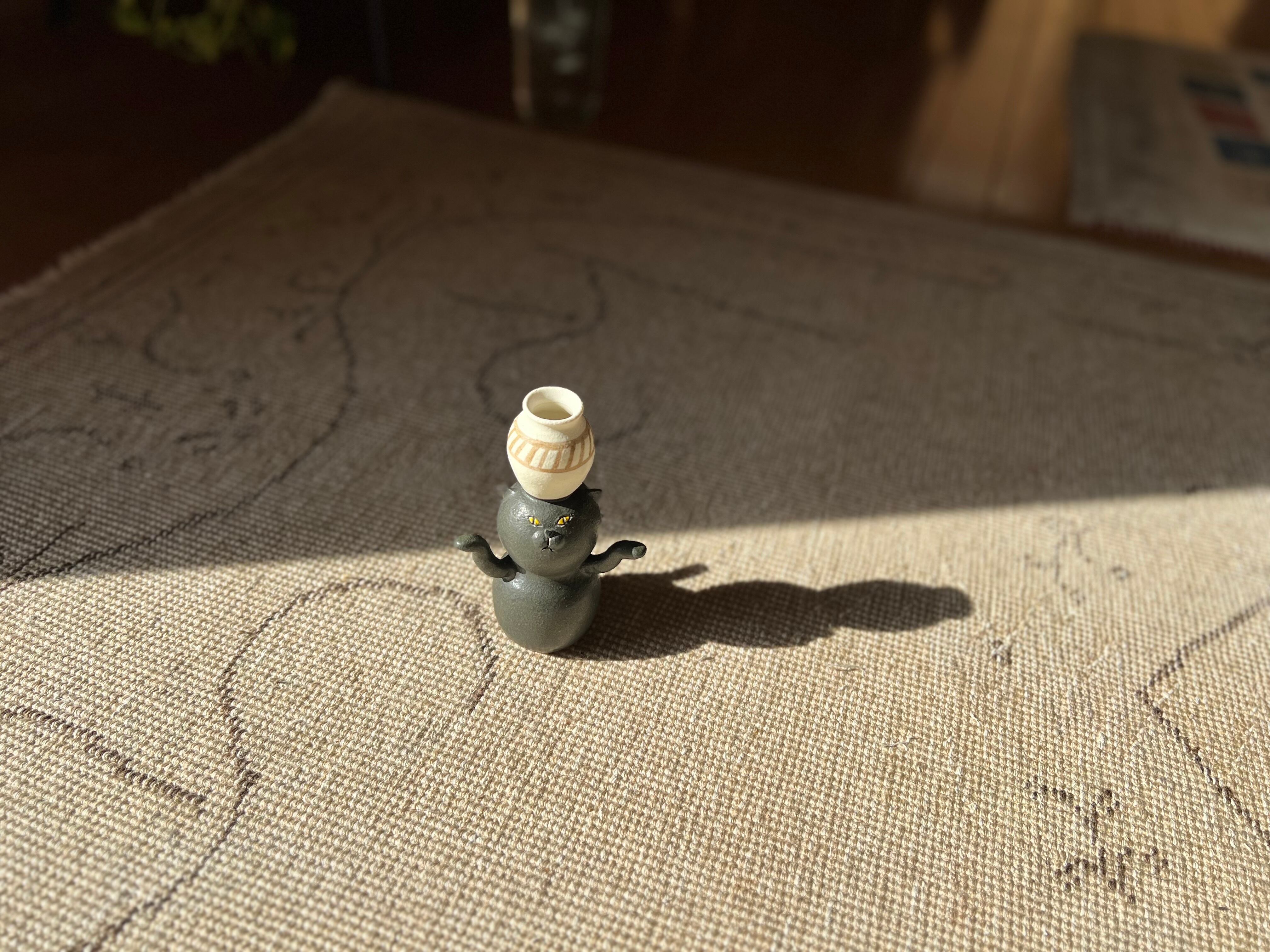 猫さん花瓶 頭の上に壺を乗せた黒猫さん